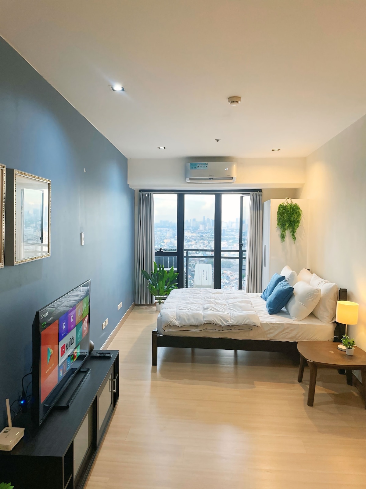Doživite osupljiv razgled na mesto iz našega elegantnega studia v 43. nadstropju, ki ga upravlja MR CACTUS MNL. Sprostite se s 50-palčnim pametnim televizorjem, kuhajte v popolnoma opremljeni kuhinji in uživajte v osvežujoči prhi z zanesljivo toplo vodo. Sprostite se na ortopedski zakonski postelji za največje udobje. Nahaja se na odlični lokaciji in se prepustite vrhunski opremi, kot sta miren neskončni bazen in popolna telovadnica. Idealno za elegantno in udobno bivanje v središču mesta.