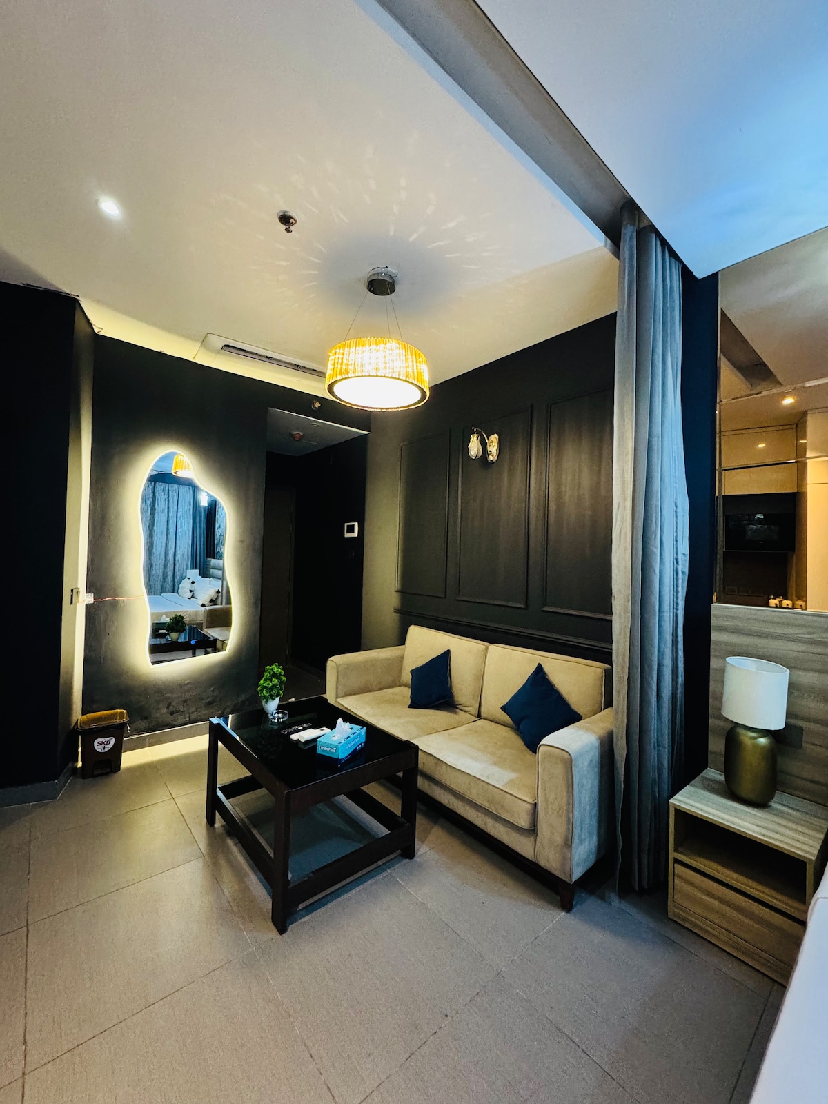 Sodoben in udoben studio v Greater Noidi, ki ima neposredno povezavo s podzemno železnico in kratko vožnjo do tržnice India Expo Mart. Vaše bivanje vključuje premišljene detajle, kot so košara za dobrodošlico, izbrane knjige in osnovne toaletne potrebščine. 🛏️ Uživajte v veliki zakonski postelji, raztegljivem kavču, hitrem Wi-Fi-ju, pametni televiziji, pisalni mizi in popolnoma opremljeni kuhinji. 📍 Nahaja se v isti stavbi kot Burger King, Domino's, California Burrito in kavarne. 🚆 Le nekaj korakov od podzemne postaje Delta 1. Fourwalls – majhno prenočišče, ustvarjeno z ljubeznijo 💙
