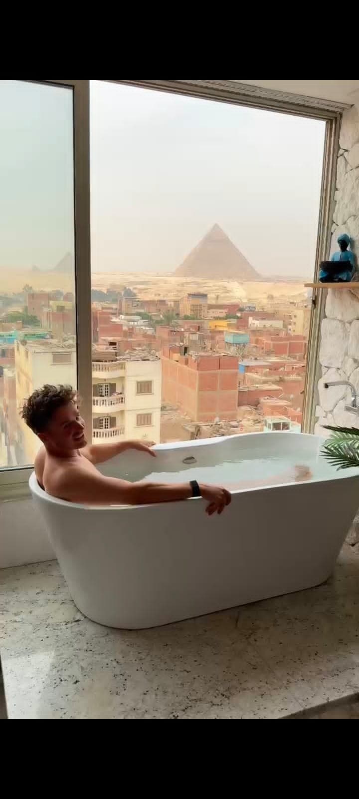 Soba s papirusom in pogledom na piramide v kadi
