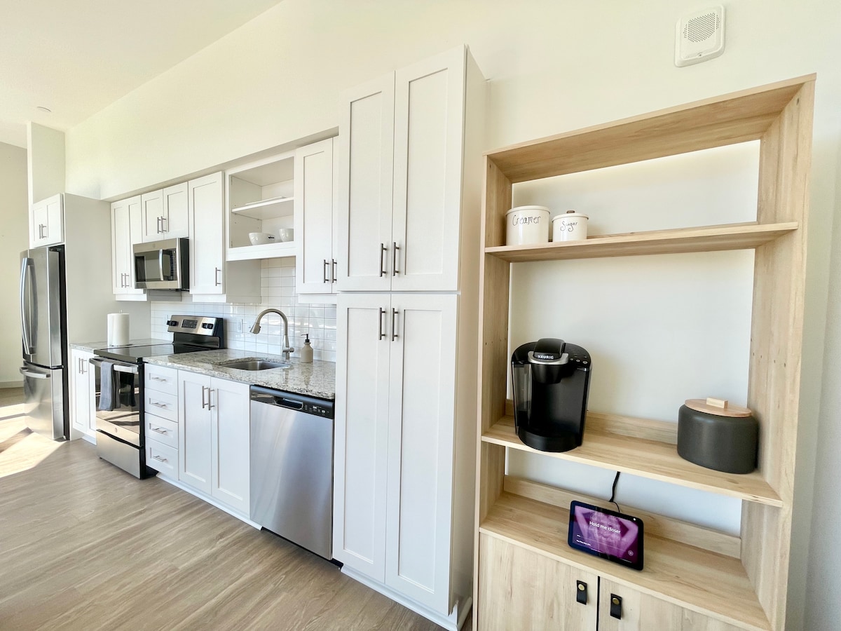 Welcome to our BRAND NEW, LUXURY 3-STORY HOME by 12 & South intersection: ★ Walk to Gulch ☆ Professionally Designed ★ 4 bedrooms with en suite bathroom: Sleeps up to 12! ☆ Private Secured (Free) Garage ★ Full PRIVATE Balcony with city view and fire pit Layout: 1st Floor: 2 Car Garage, Bedroom1 with Queen Bed 2nd Floor: Living Room, Kitchen, Dining, Half Bath, Bedroom2 with Queen over Queen Bunk Bed, Laundry 3rd Floor: Bedroom 3 with Queen Bed, Master with King Bed, Balcony with city view