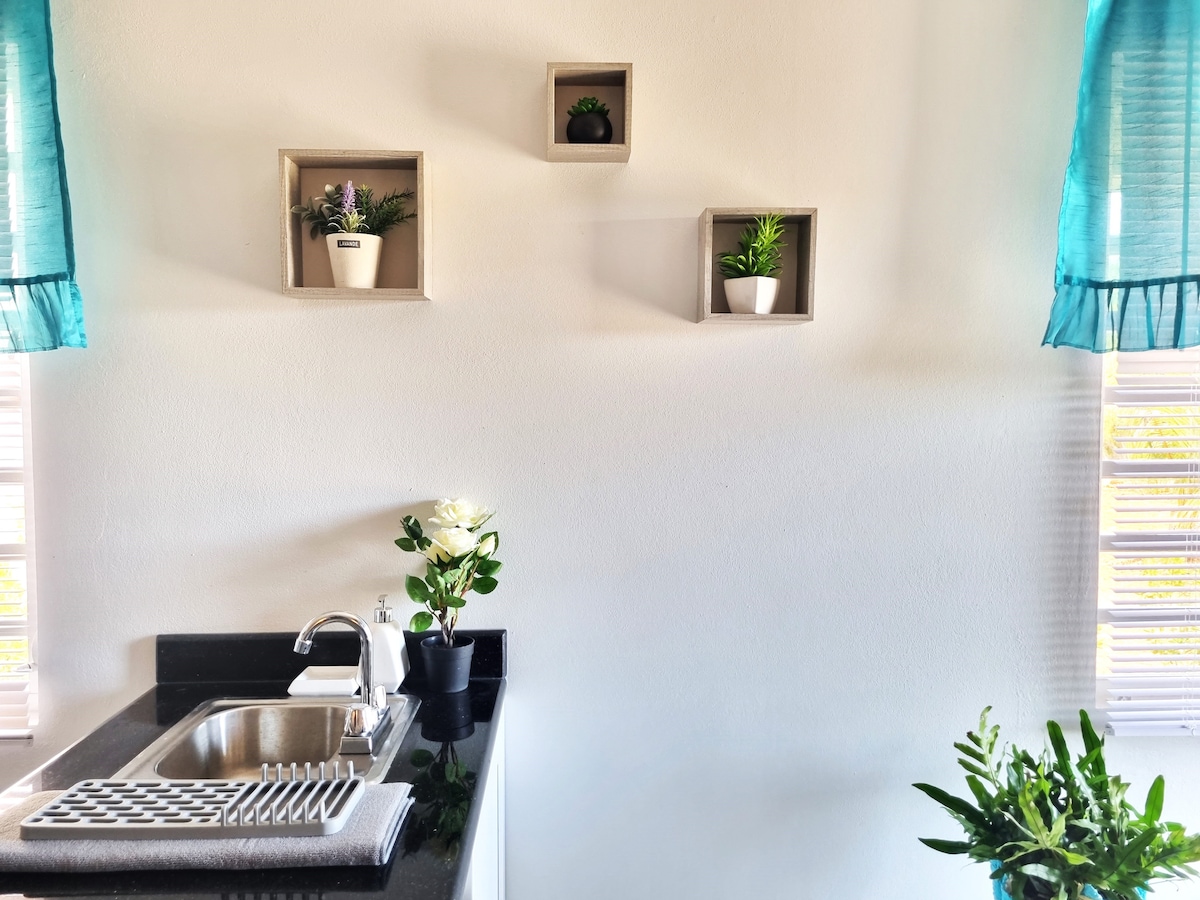 Čudovita, na novo zgrajena enosobna hiša s sodobnim slogom. Posebnosti vključujejo popolnoma klimatiziran prostor, zakonsko posteljo,dvojne 55-palčne televizorje s polnimi kanali IPTV in pretočnimi storitvami, varnostna vrata, varnostne kamere v sklopu namestitve, popolnoma opremljeno kuhinjo, pralnico s pralnim in sušilnim strojem ter še veliko več. Namestitev se nahaja v središču, vendar nudi največjo zasebnost. Ni prihranjenih stroškov, da bi vam zagotovili edinstveno, vrhunsko izkušnjo za vaš užitek. Veselimo se, da vas bomo sprejeli.