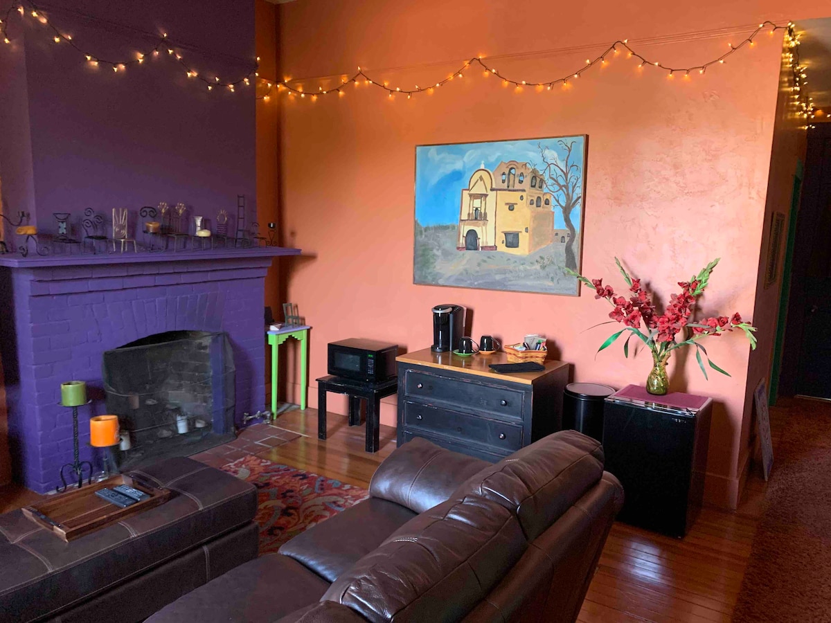 Nahaja se le 1 ulico od prestižne 4. avenije. Uživajte v tem nenavadnem zgodovinskem prenočišču, zgrajenem leta 1908. Imate vse nočno življenje, vključno s klubi in potapljanjem. Kamni so oddaljeni od avtomobila Tucson Street in le nekaj minut od središča mesta in Univerze v Arizoni. Ne glede na to, ali ste tukaj zaradi posla ali užitka, je to pravi kraj. Ta garsonjera nudi zakonsko posteljo, Roku TV z Netflixom, Wi-Fi, polno kuhinjo z aparati, vključno s Keurigom, hladilnikom, mikrovalovno pečico in štedilnikom.