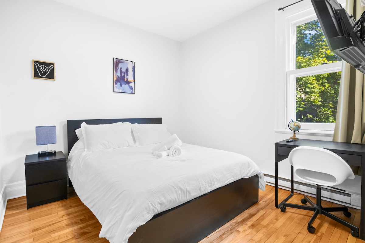 Experience comfort and style in this bright, spacious one-bedroom apartment 🚪 Self-check-in 🛏️ King-size bed for restful nights 📺 Two Smart TVs for streaming your favorites 🍳 Fully equipped kitchen with stove, oven, fridge, dishwasher, and Nespresso machine 🛋️ Cozy living area 🧺 In-unit washer & dryer 🚗 Nearby parking recommendations on your Boarding Pass 🧳 Luggage storage options nearby ⏰ Early check-in or late check-out available upon request Steps from Mont Royal Park and top cafés
