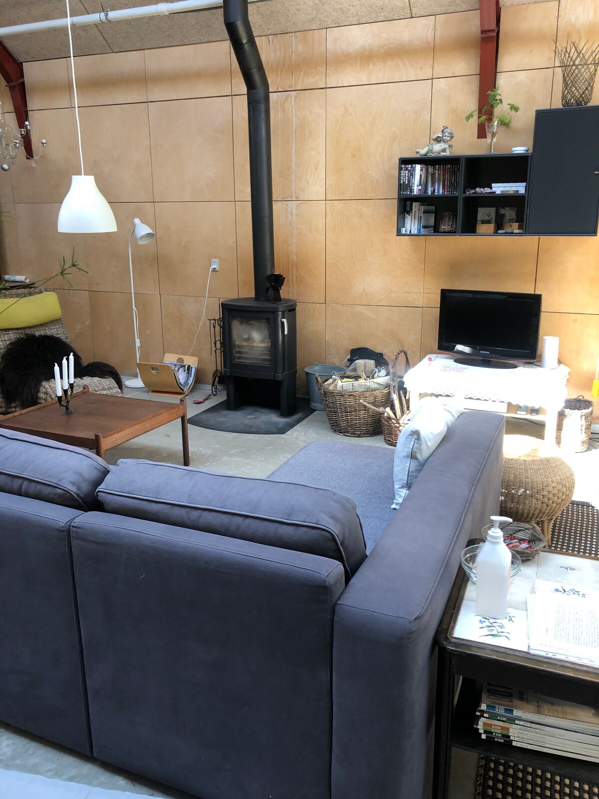 Majhna rumena prizidka se nahaja sredi čudovite narave hriba. Tiho je in jeleni se srečno pasejo na vrtu, ko se dan zbudi. Štedilnik na drva je dober v stari hiši, iz predelanega stanovanja pa je pogled na travnik in polja. V glavni hiši živijo Filip, Helene, Asger (4) in Axel (2) skupaj z najinima srečnima psoma (ritmi). Do Bryrupa je 2 km, kjer se lahko zabavajo kopališče ob jezeru, teniška igrišča ali staro veteransko igrišče. Zgoraj je zakonska postelja, spodaj pa raztegljiv kavč. 1 velika soba.