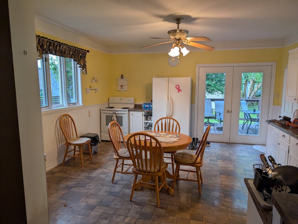 Dobrodošli v Whit's Endu na čudovitem otoku Drummond. Z veseljem bova z vami delila najino hišo na obali v zgodovinskem območju Whitney Bay. Uživajte v jutranji kavi na terasi, poslušajte potopce in opazujte tovorne ladje, ki plujejo po jezeru Huron. Sončni zahodi nad zalivom Whitney so resnično spektakularni. Življenjski prostor se nahaja v drugem nadstropju naše obnovljene hiše na vodi. V pritličju imamo majhno trgovino z lončarskimi izdelki, zato boste čez dan morda občasno opazili delo v njej.