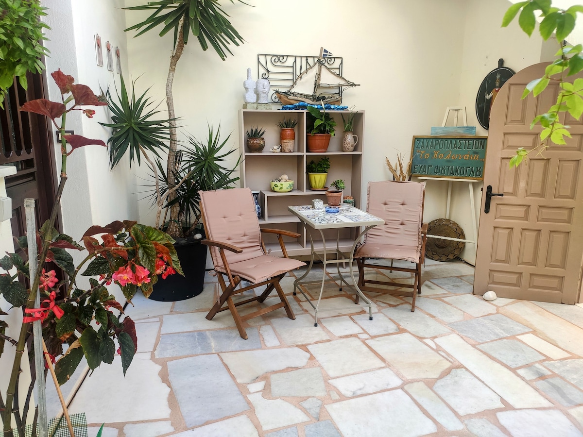 Odprite morsko modre polkna in spustite hladen vetrič, nato pa pripravite prigrizek na mestnem betonskem kuhinjskem pultu v vetrovnem prenočišču ob obali. Stopite na prostorno, listnato verando in uživajte v sproščenih pijačah ob sončnem zahodu z neoviranim pogledom na ocean. Apartma se nahaja ob peščeni plaži za jutranje kopanje in 2 min hoje od središča Naousa in njenega glavnega trga. Trgovine, restavracije, bari in klubi so v bližini, vendar je območje zelo mirno in mirno.