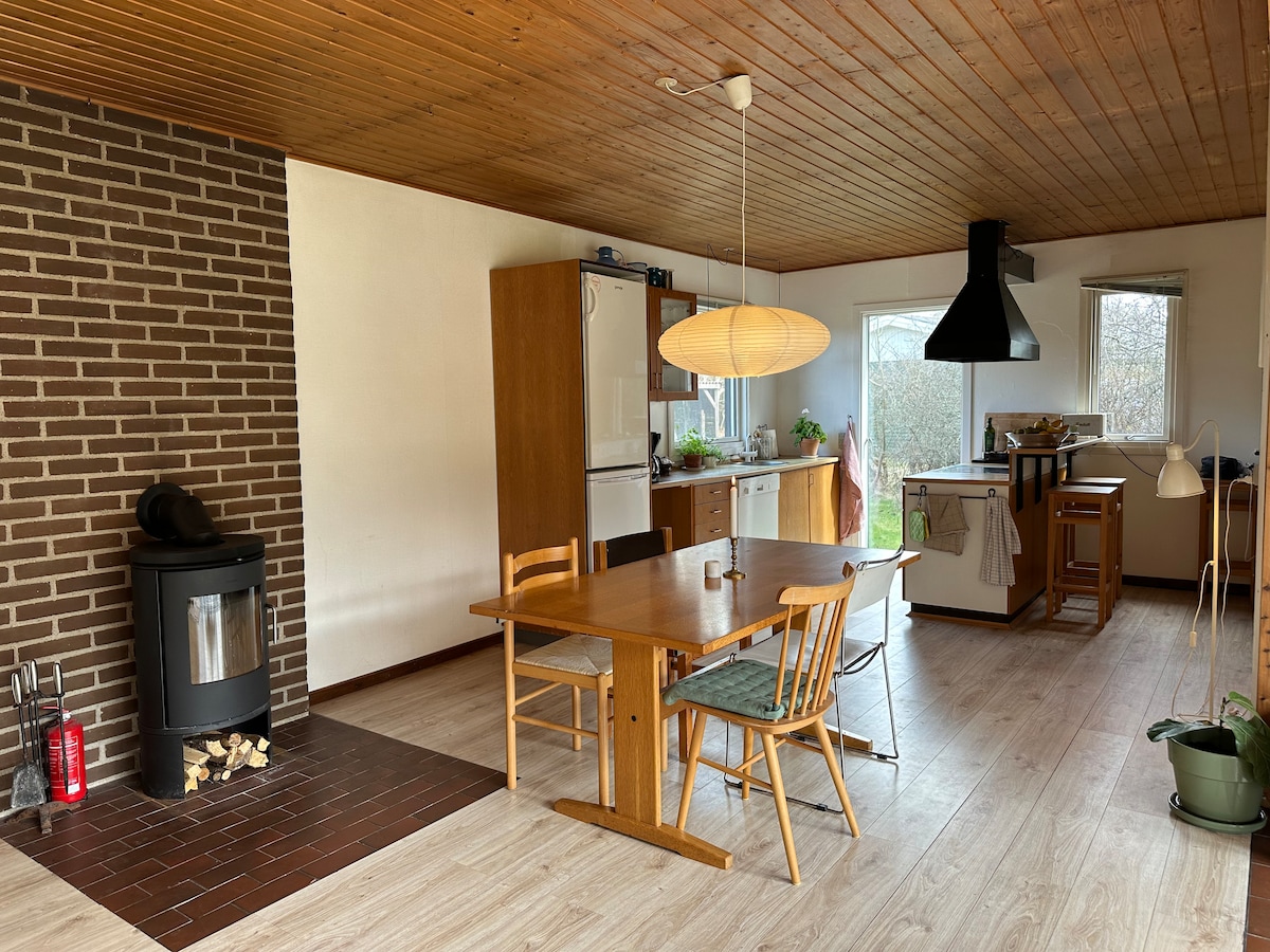 Hiška na deželi sredi narodnega parka Thy z možnostjo dobrih naravnih doživetij in deskanja. Hiša se nahaja na veliki naravni parceli z zavetiščem, ognjiščem, peskovnikom in gugalnicami. Hrano lahko pripravite na prostem na terasi, ki je opremljena z žarom in pečico za pico. Na voljo je zunanja savna, zunanja prha s hladno in toplo vodo. Hiša ima dve sobi s 4 posteljami, popolnoma novo kopalnico, lepo kuhinjo/dnevno sobo in dnevno sobo z veliko nišo z dvema spalnicama. Hiša ima toplotno črpalko in štedilnik na drva (drva so vključena)
