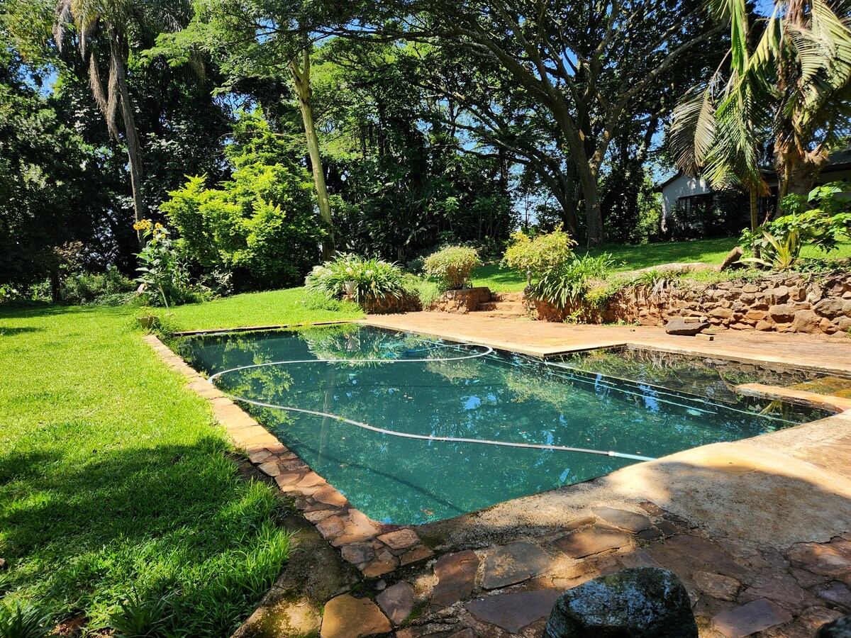 Perfect place to enjoy your peaceful stay, enjoy the sound of birds, breezing trees and river flow view. Indulge in natures best, with our outdoor bush bath tub and outdoor shower. Private pool, boma and braai area We have a fully equipped kitchen, offering self catering, with an option of private chef.