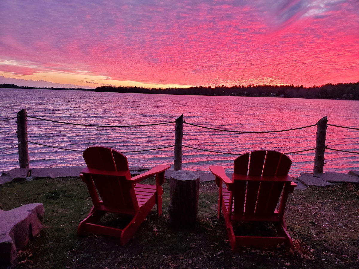 Unwind at this log home located on the tranquil Crowe River just minutes from quaint downtown Marmora. Perfect for fishing, paddling, star gazing, grilling. Access to canoe & kayaks (experienced paddlers only) & firewood included. Inside you'll find many amenities like wifi, satellite tv, and a full kitchen. Down the street you'll find shops and restaurants, and a little further is Petroglyphs Provincial Park, the largest concentration of petroglyphs in Canada, with some over 1000 years old.