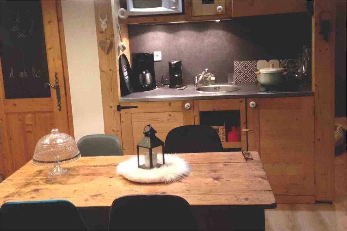 Avto pustite na parkirišču in peš izkoristite postajo. Mirno gnezdo, obrnjeno proti jugu, ki se nahaja poleg SPA-JA, za Carrefour Montagne, 5 m hoje od smučišča, ima vhod/smučarsko sobo, majhno spalnico s posteljo 140 x 190 cm, nočno omarico, garderobno omaro, kuhinjo s pomivalnim strojem, pralno-sušilnim strojem, kombinacijo z valovi pečice, Nespresso aparat, dnevno sobo s kavčem, Wi-Fi, pametno televizijo z Netflixom in Orangeom, jugozahodnim balkonom.