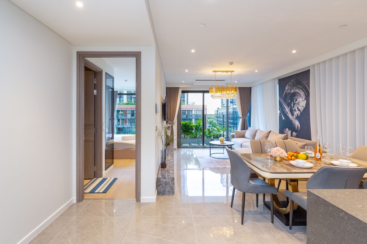 Elegantno opremljeno 2-posteljno stanovanje s prostorno notranjostjo, velikim balkonom in pečico. V celoti opremljen s široko paleto opreme (glejte fotografije) brez primere v drugih stanovanjih v mestu, hitra podpora strankam do poznih ur. Bivanje pri nas je najboljša izbira za goste, ki cenijo zanesljivost in priročnost. Nahaja se v galeriji The Galleria, ki je del najbolj priljubljene luksuzne soseske za turiste v Ho Ši Minu: Metropole Thé Thiêm. Tik čez reko od središča mesta.