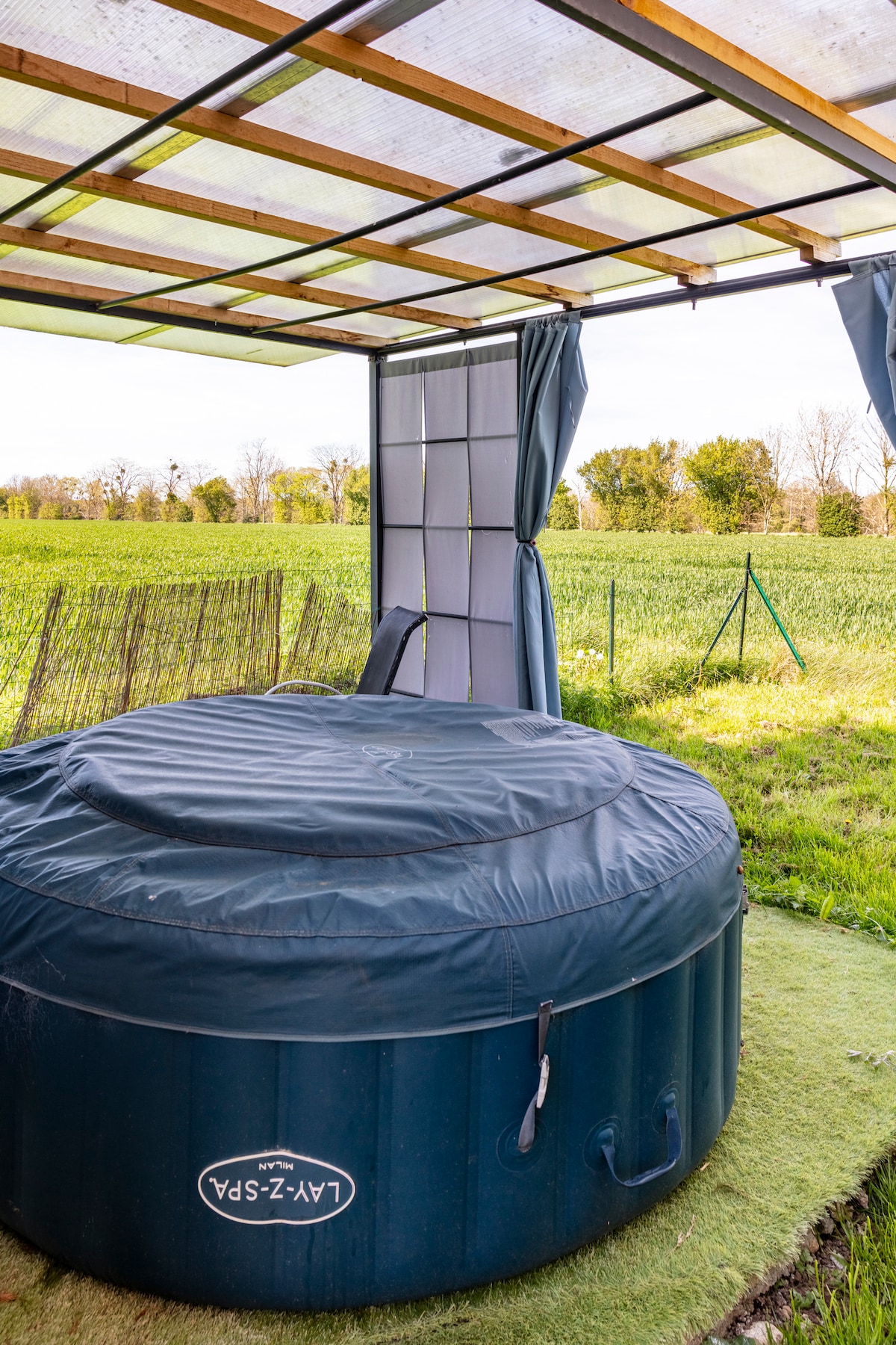 Več kot samo prenočišče. To je resnično potopitveno doživetje, kjer se razkošje sreča z naravo, ki je zasnovano tako, da vas udobno sprejme. To zatočišče miru se nahaja v osrčju travnikov, kjer se pasejo naše krave Aberdeen Angus. Ne glede na to, ali se želite sprostiti v kadi Balneo, opazovati zvezde iz postelje ali pa samo uživati v miru podeželja, ta mini-hiška obljublja čarobne in nepozabne trenutke.