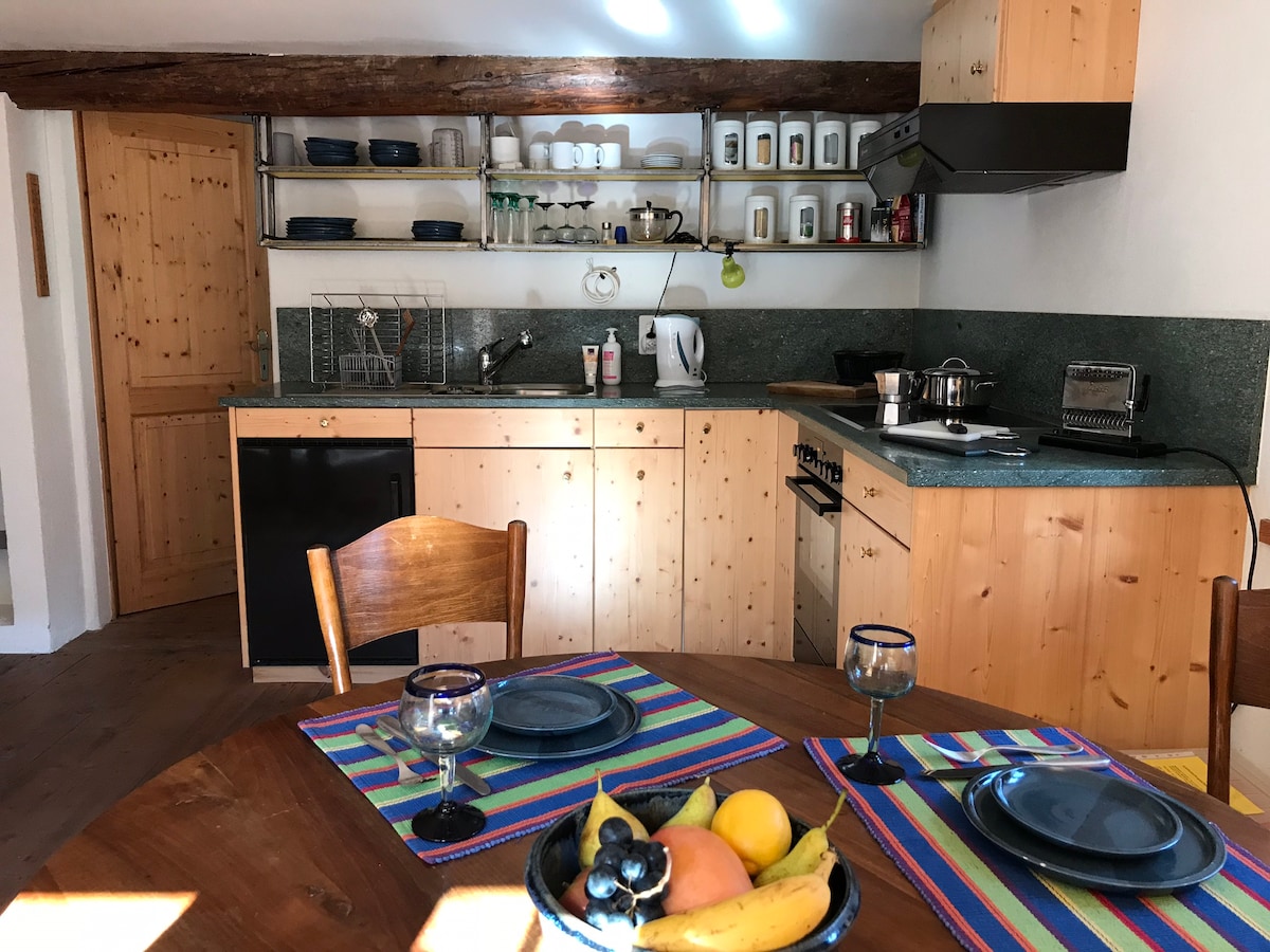 Oaza miru v južnem delu švicarskih Alp, hiša v naravi. Kraj, kjer lahko poiščete čas in zase. Le streljaj od vsega. Vsa notranjost je v gozdu, na dvorišču je štedilnik na drva, nova kuhinja, velika miza in še večja. Sami boste. 4 sobe, 3 enojne postelje + 3 zakonske postelje.