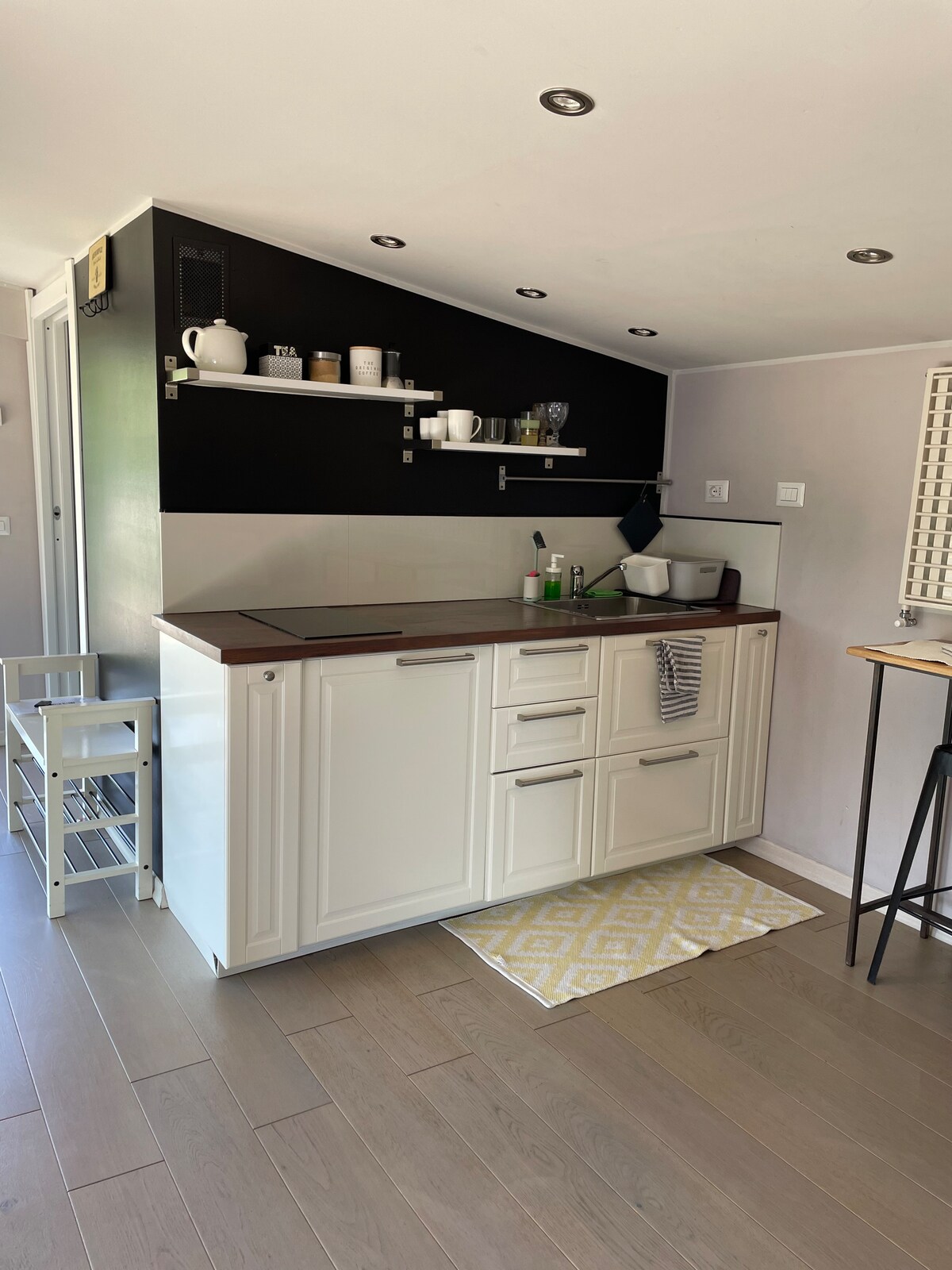 Sodobno stanovanje, 35 kvadratnih metrov, s kuhinjo, spalnico , kopalnico in verando s površino 35 m2. Parkirno mesto pred namestitvijo na zasebni posesti. Sodobna zaključna dela, idealna za tiste, ki imajo radi mir in naravo . Nekaj metrov stran lahko zlahka pridete do kipa San Carla