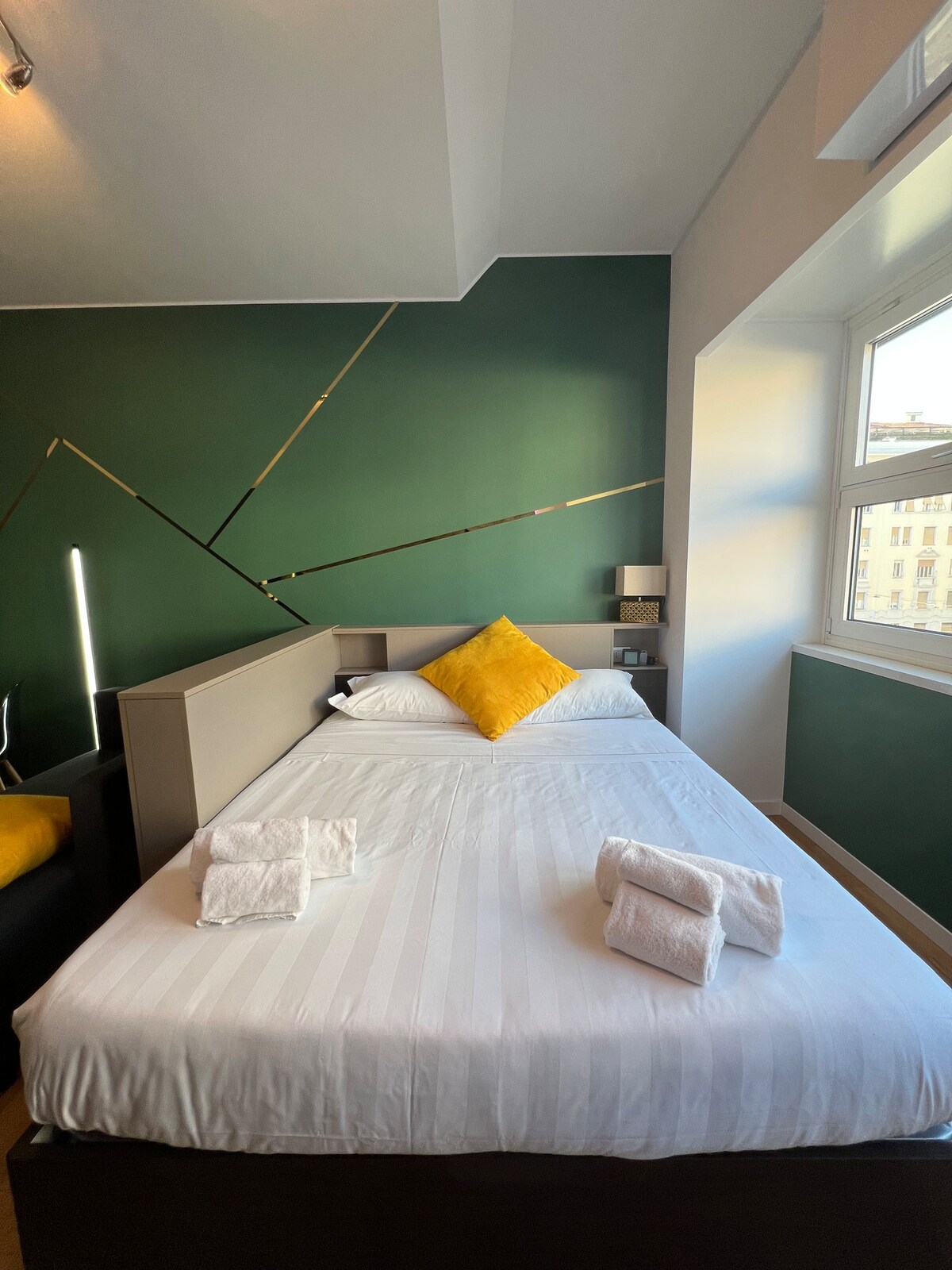 Questo moderno bilocale offre una combinazione perfetta di comfort e stile, perfetto per chi desidera vivere la città da vero milanese. • Luminoso soggiorno con divano letto, grande TV e zona pranzo/cucina completamente attrezzati • Camera da letto: spaziosa e con letto matrimoniale + letto singolo • Bagno: elegante e funzionale, con asciugamani e set di cortesia. • Wi-Fi gratuito e aria condizionata *Troverete un depliant con i consigli per vivere la città al meglio e una mappa della metro