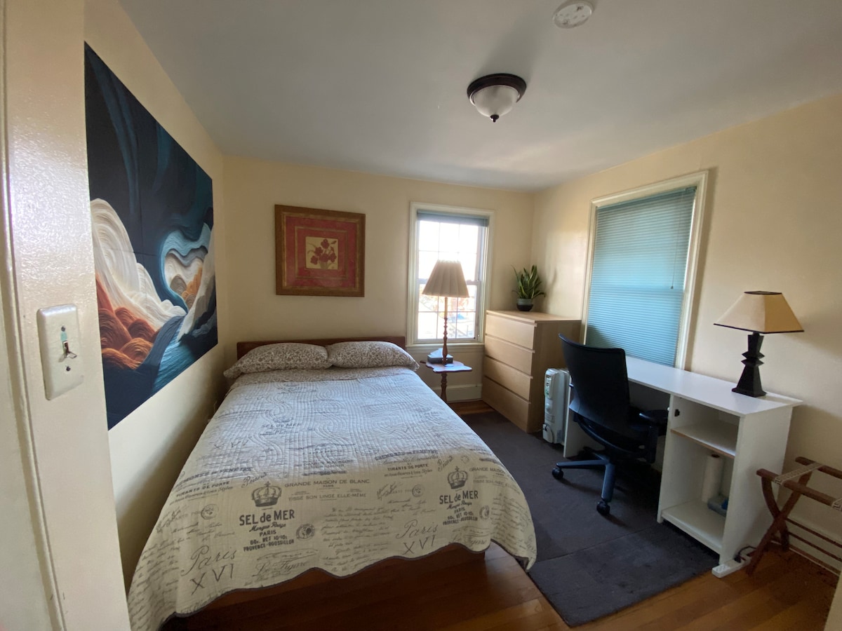 Ta soba je najprimernejša za mirnega, samostojnega popotnika. Drugi gost mora plačati dodatnih 30 USD/noč. Imate svojo spalnico z zakonsko posteljo, kopalnice pa si delite z drugimi gosti. Visokohitrostni Wi-Fi, HDTV, brezplačno pranje perila. Soba NI opremljena s parkiranjem izven ulice. Brezplačno parkiranje ob ulici, avtobusna postaja za vogalom, postaja podzemne železnice je oddaljena 15 min vožnje z avtobusom. Kuhinja/jedilnica/dnevne sobe so v skupni rabi z vsemi ostalimi v hiši.