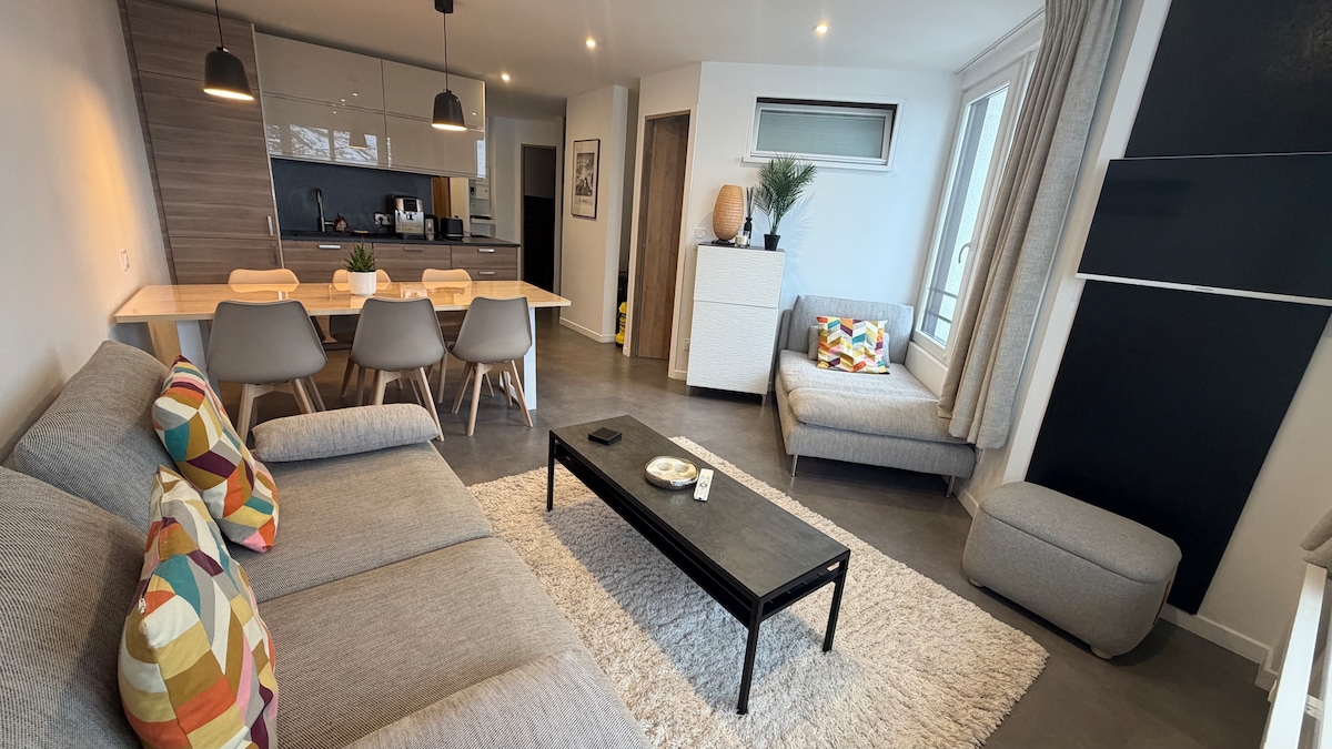 Svetla garsonjera s pogledom na gore. Velik balkon z mizo in stoli Vhod z 80 pogradi, omaro,kopalniškimi suhimi brisačami, ločenim sušilcem za lase. Dnevna soba s prenosno posteljo, klopjo,TV-jem, omaro,kuhinjsko nišo, pečico, mikrovalovno pečico, kuhalno ploščo, pomivalnim strojem, opekačem kruha, filterom in aparatom za kavo senseo, grelnikom vode, mešalnikom, stopljeno napravo,raclette. Škornji za smučarske omarice. Popolnoma se nahaja v mirni soseski. Brezplačen prevoz, pekarna, supermarket, restavracija, bar itd.