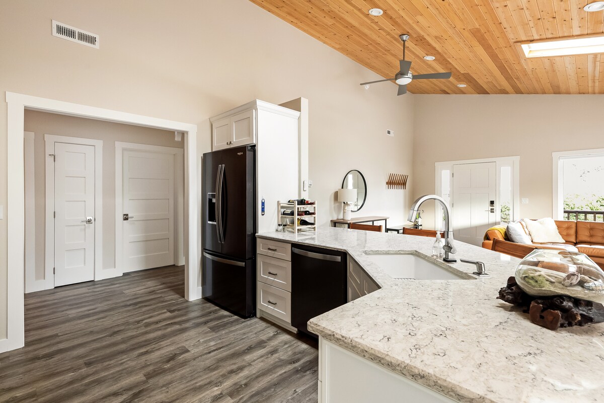 Uživajte v obali v naši udobni, sodobni koči. Namerno zatočišče v naši gozdnati soseski, ki se ponaša z očarljivim razgledom na gozdna drevesa in prostoživeče živali. Urejeno z razkošnimi napravami in posteljnino, da bo vaše bivanje bolj udobno. Ogrevana cementna tla in oblikovalsko pohištvo poskrbijo za prijetna jutra s skodelico espressa. Več plaž/pohodov v nekaj minutah vožnje. Sprostite se v našem mirnem zatočišču ter uživajte v naravnih lepotah in obilju osupljive obale Oregona. @Meenalodge