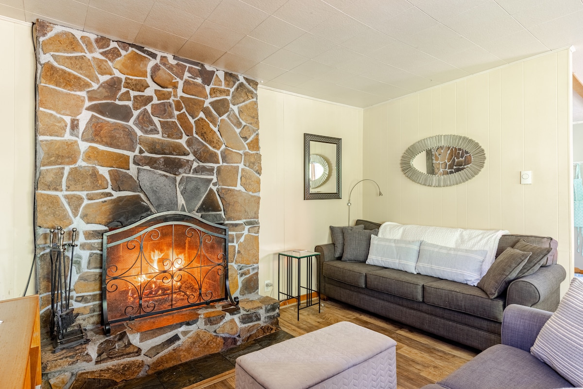 Quiet rustic cabin with 2 Bedrooms (queen beds), 1 bath, wood burning fireplace, kitchen fully equipped, deck, wifi,, ROKU TV. A 4 block walk to beach & 2 blocks shopping/restaurants. Two car parking in private driveway, Washer/dryer, bedding, towels provided. Pets welcome and front yard is fully fenced. The cabin has not been updated. If you are looking for stainless steel appliances you will not find them here, but you will find a place we love + EV Level 2 charger. License MCA # 1351
