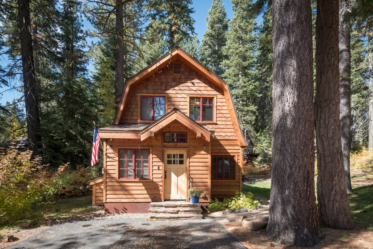 The Chalet 300 l Tahoe West Shore Cabin This adorable, authentic pine cabin has all the luxuries of tiny home living, and just a short walk to Sunnyside and Lake Tahoe. Nestled in the pines, it exudes the ultimate in a mountain lifestyle visit. Completely renovated, this one bedroom, 1 bath has all new appliances in the renovated kitchen, all new bath, eclectic living space, and inviting bedroom. Large windows look out towards the pines and the spacious wrap around deck. Lake Tahoe so close.