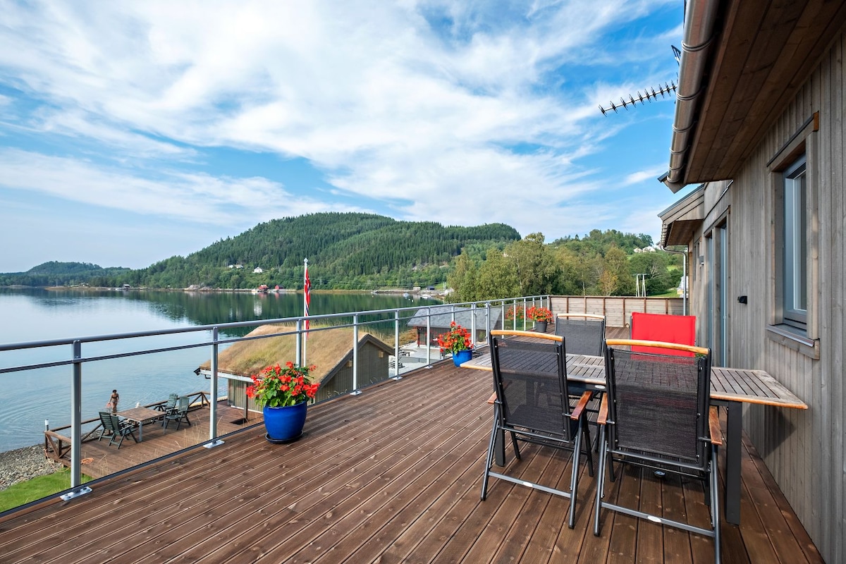 Poletna hiša s fjordom s čolnom, kajakom, masažno kadjo