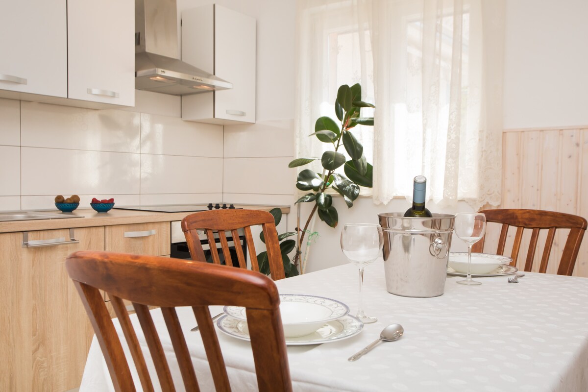 Pozabite na svoje skrbi v tem prostornem in mirnem prostoru. Apartma je sestavljen iz spalnice z zakonsko posteljo, eno kopalnico, dnevnim in jedilnim prostorom ter kuhinjo. Poleg tega ima zelo prostorno teraso in je opremljena z klimatsko napravo, Wi-Fi, satelitsko anteno, TV, kavarno.. Brezplačno parkiranje in brezplačen privez za čoln je na voljo na zahtevo. Hišni ljubljenčki so dobrodošli. Za vsako dodatno zahtevo smo vam na voljo.