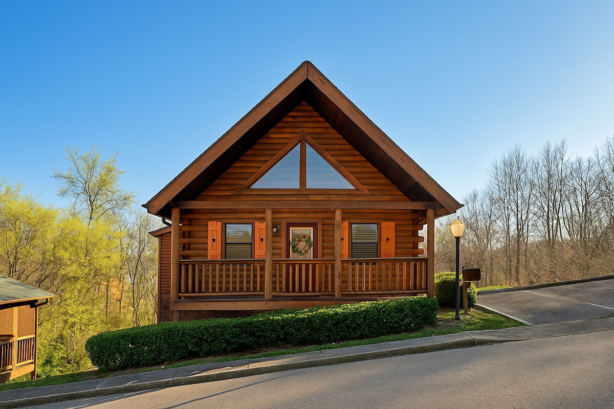 Čudovita koča za 6 oseb z zasebno slepo ulico ob pasu Pigeon Forge; večerna predstava Titanic, Hatfields in McCoys je oddaljena peš čez parkirišče; uživajte v zasebni masažni kadi ali skupnem bazenu! Spite na naših čudovitih vzmetnicah blagovne znamke King & Queen Purple; sprostite se na rokerjih na verandi, ima dobro založeno kuhinjo s kaminom in pralnim/sušilnim strojem v koči; zasebno zgornje nadstropje s kopalnico v polni velikosti