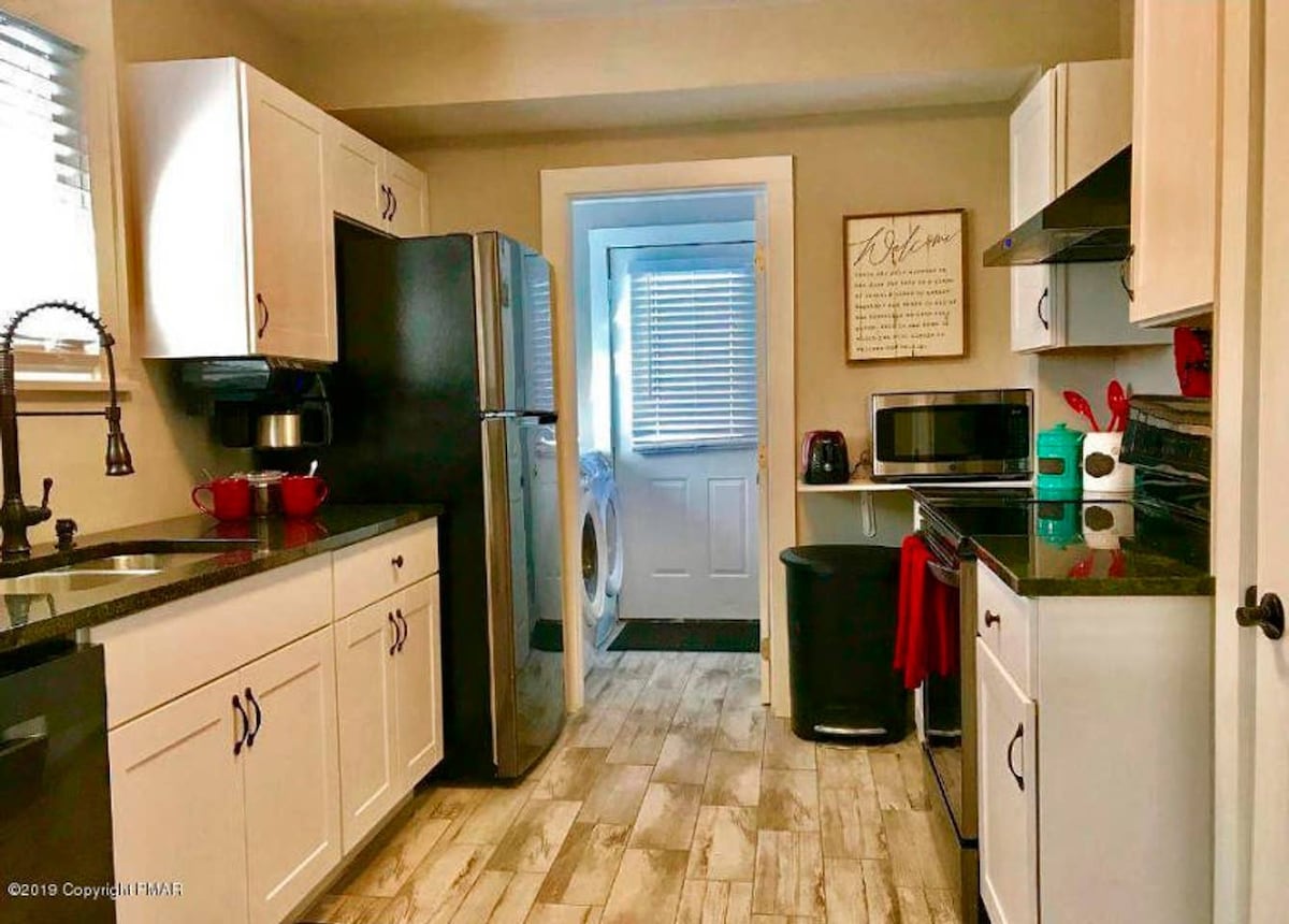 Zabava v gorovju Pocono. Namestitev je čudovita in udobna z masažno kadjo skozi vse leto, v katero se lahko povzpnete in SPROSTITE. Popolnoma opremljena kuhinja, na voljo je čista posteljnina za udobne zakonske postelje. Pohodništvo, terenska vozila, jahanje, pustolovski center Skytop je 3 minute oddaljen od Zip Line, Treetop Climb, Paintball, Arrow Tag. Odlična hrana in pijača v več zelo lokalnih restavracijah. Prav tako je blizu igralnice ter parkov Camelback in Kalahari. Popusti za večdnevna bivanja Hitra povezava Wi-Fi in prilagodljiv delovni prostor