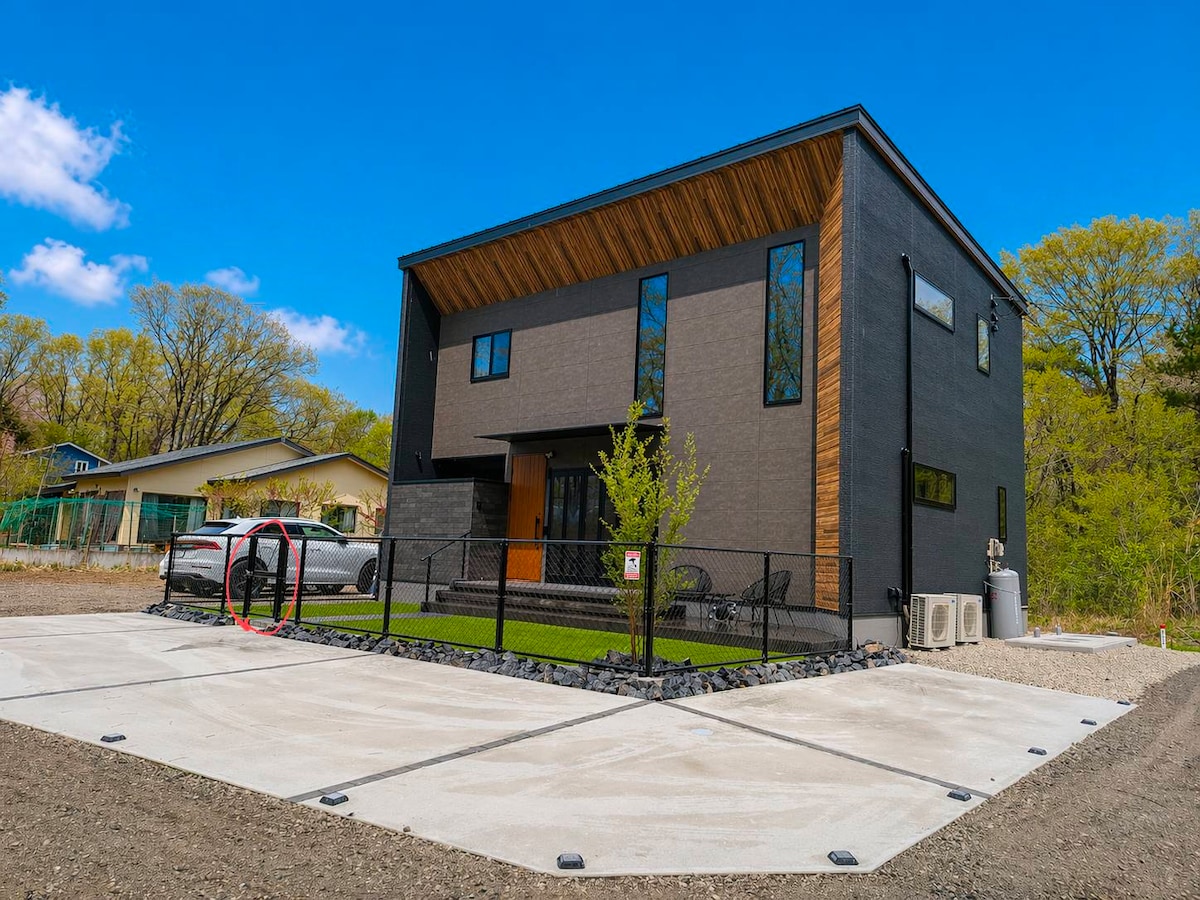 森林の中にひっそりとたたずむ、あなただけの大人の隠れ家。那須高原スマートICから信号・渋滞の少ない一般道で12分と高アクセス。 那須主要観光地から車で15分とアクセスも良い。 中心部より標高が高いため、都心より10度ほど気温が低い。エアコンなしでも夏は涼しく過ごすことができる。 広々としたテラスに燦々と降り注ぐ陽射しが、家族や仲間と過ごす楽しいひと時。 外には、特大なBBQスペース。テーブルにははシェード、ソファーにはパラソルが設置され、森の中でゆっくりとお過ごしいただけます。 広々としたリビングダイニングに120インチの4Kシアターを完備、雨の日も室内で楽しむことができます。 外では、タッチオーブン使用可能な75cm大型のファイヤーピットを完備。火のゆらぎに心を休めながらゆっくりと滞在、非日常を味わう特別な空間を堪能。壁や床に使用した自然木と四方どこを見ても緑の世界。緑の美しさにリラックスしてお過ごし下さい。 駐車場が4台対応可能、5台目相談可能。