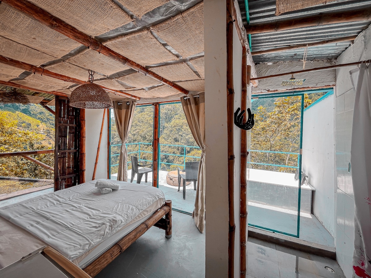 Glamping en medio de los bosques de Boquía en Salento Quindío. Ambiente de flora y fauna silvestre. Un glamping en construcción rustica con materiales de la región como la guadua y maderas y en combinación con acabados modernos. Frutas, café, cereales y yogurt gratis durante la estadía. Cerca a ríos, cascadas y rutas para avistamiento de aves. Dotación completa de cocina y equipo para avistamientos de flora y fauna. wifi, agua caliente, parqueadero. Ambiente totalmente privado e independiente.