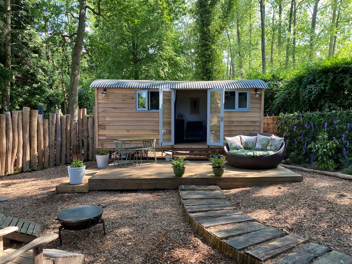 Secret Lodge: shepherds hut with hot tub & sauna