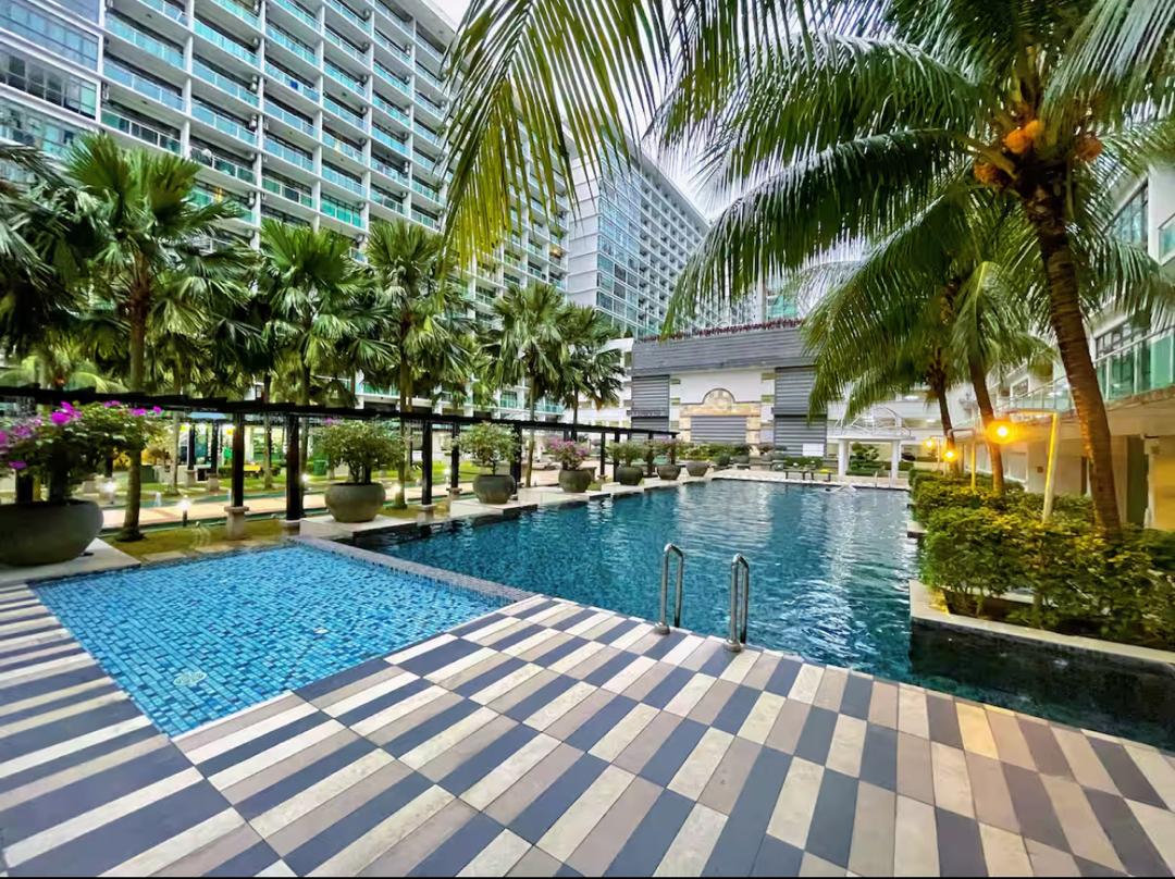This is a spacious 2Bedroom unit perfectly fit for guests up to 5 pax with total of 1 king size bed 1 queen size bed 1 single bed High floor with high view. 1. Basketball Court 1. Gym Room 2. Function Hall 3. Lounge 4. Library 5. Manicure Shop 6. Mini Theatre 7. BBQ Deck 8. Swimming Pool 9. Sauna 10. Jacuzzi 11. Game room (Pool Table, PS Room, Darts and more) 12. Laundry 13. Mini Market -Sky Garden Guest are not allow to smoke in the room , please smoke at the balcony if needed