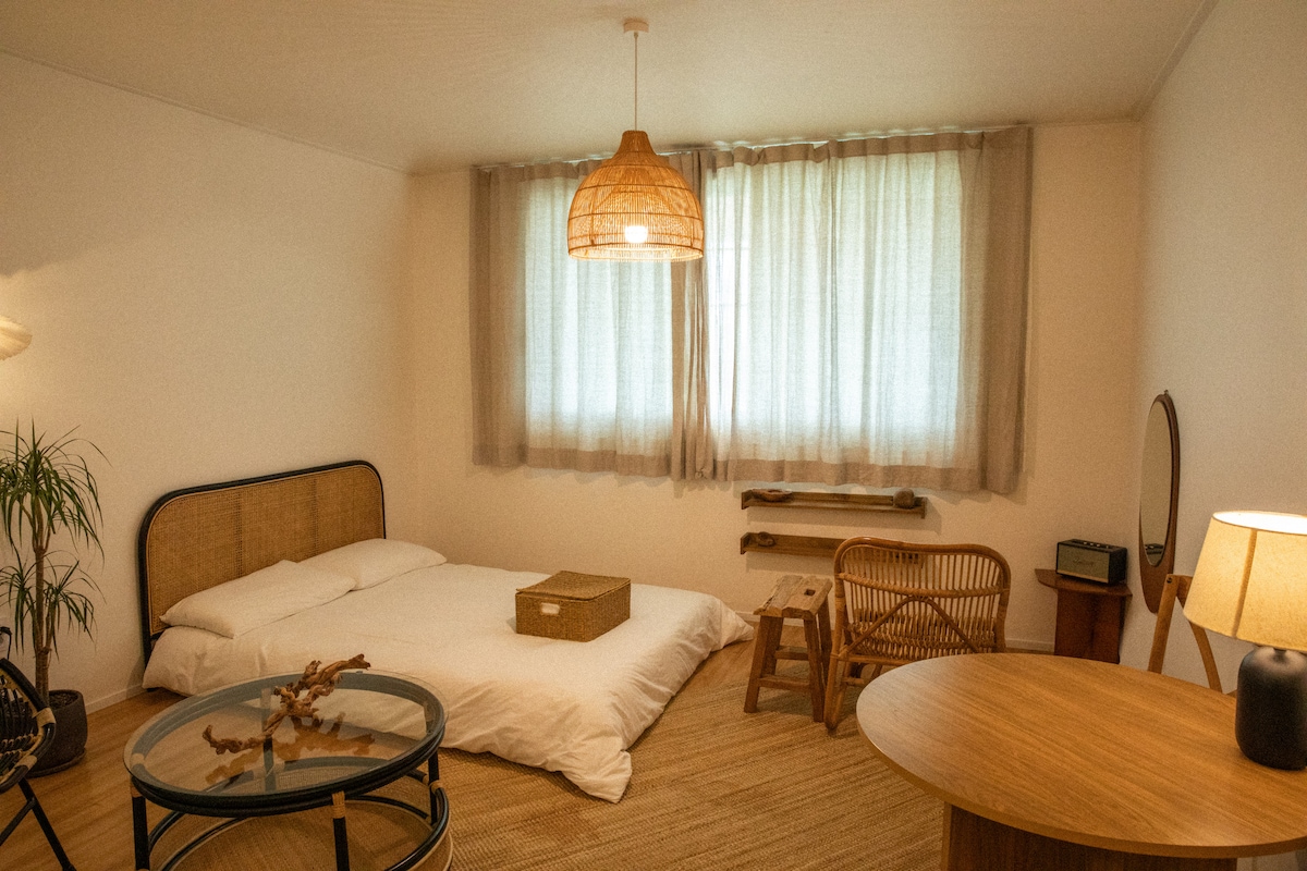 "SEOM Studio" where you can gaze at the beautiful Seogwipo Sea and Beomseom beyond the large window facing southwest. If the weather is good, you can stand on the rooftop of your room or the island building and enjoy the warm orange sunset. We have prepared this space with the hope that the time you spend here will be a moment to fully embrace the beauty of your everyday life. 111, Taepyeong-ro, Seogwipo-si, Jeju-do