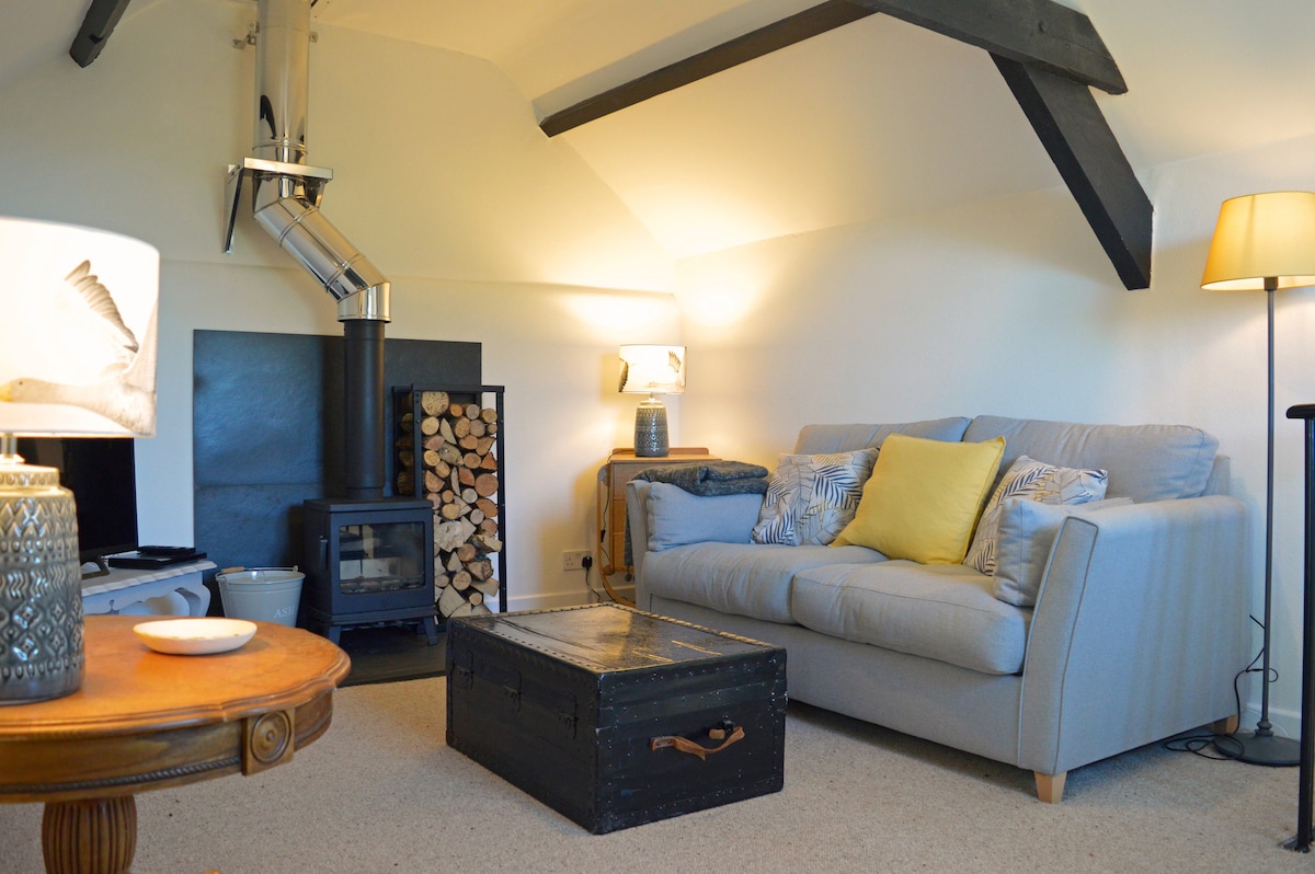 To nenavadno samostojno kmetijsko poslopje je polno značaja in miru (brez WI-FI-JA). Na voljo je odprta kuhinja/dnevni prostor z udobno pečjo na drva (drva so na voljo za 7 £ na mrežo) in zajtrkovalni pult s skrilasto površino. Namestitev ima masivna hrastova tla, razen skrilavca v kopalnici, zato ne pozabite na copate! Kuhinja vključuje pečico, kuhalno ploščo, hladilnik z zamrzovalnikom, opekač kruha, mikrovalovno pečico in grelnik vode. Udobna dnevna soba se odpira na privlačno teraso in travnato površino. Žal ne sprejemamo hišnih ljubljenčkov
