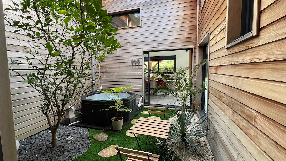 Maison au cœur des Landes à 20mn de Mont de Marsan, 30mn de DAX et 50mn de l'océan. Située dans un quartier paisible, profitez du calme avec commodités à 5mn. Ce logement rénové avec étage dispose d'une cuisine sur-équipée, d'un salon lumineux et de chambres spacieuses. Nouveauté : un spa d'extérieur est disponible en option pour vos moments de détente. (voir modalités plus bas) Vos animaux sont les bienvenus grâce au terrain entièrement clôturé. Un cadre idéal pour tout type de séjour !