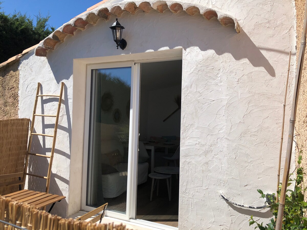 Bagnols en Forêt, v ograjenem, mirnem, klimatiziranem garsonjeri 25 m² (v vili 2019 - neodvisen vhod), vse udobje, 2 osebi - brez otroka ali dojenčka -. Vključuje 1 dnevno sobo z opremljeno kuhinjsko nišo, dnevni prostor z raztegljivim kavčem, TV, shrambo. 1 spalnica 1 postelja (160 x 200) in prostor za prhanje, omaro, ločeno stranišče. Na voljo je parkirišče, bazen (8x4) v skupni rabi z lastnikom, terasa z mizo, stoli, plancha, ležalniki, senčnik, prha. Prepovedano kajenje, hišni ljubljenčki niso dovoljeni.