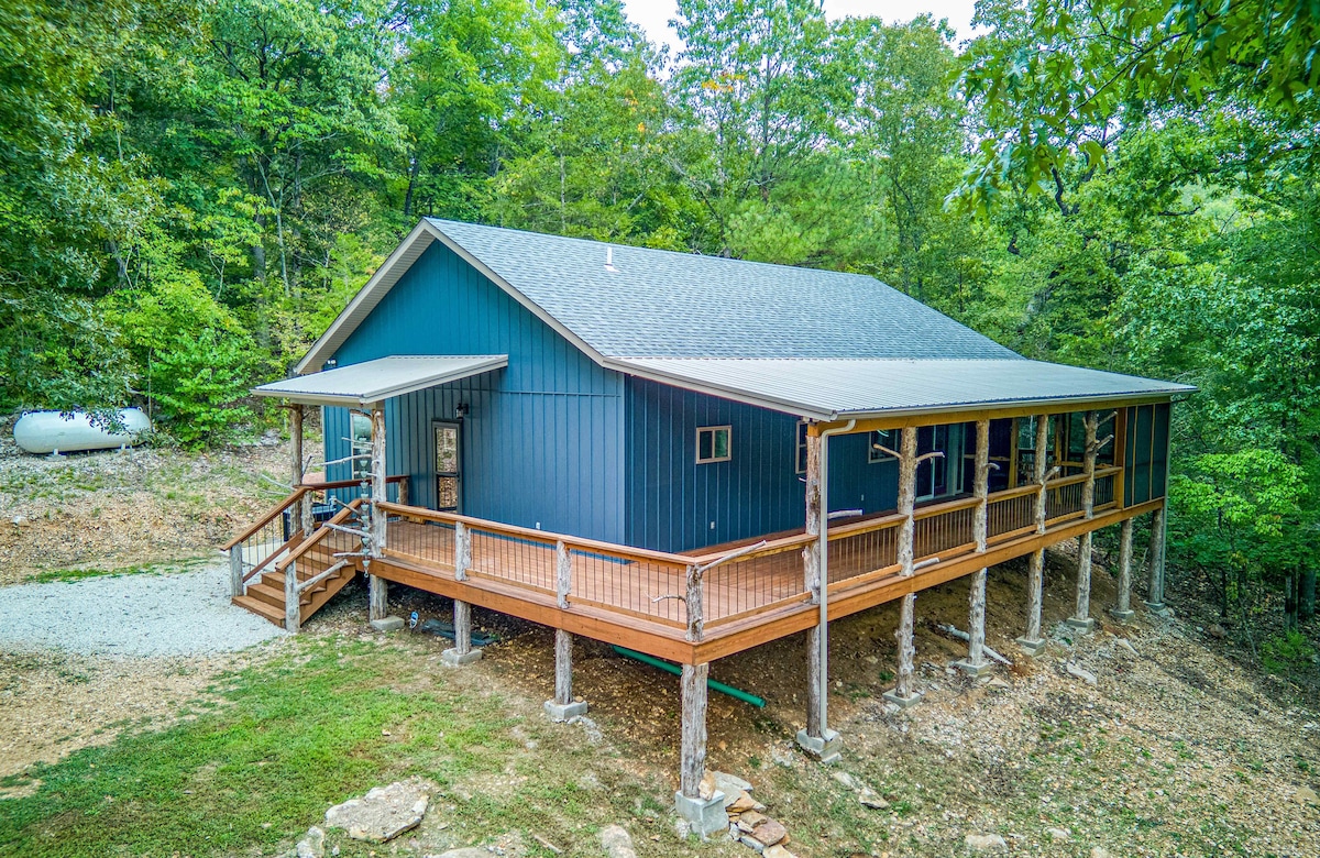 Čudovita brunarica, ki se nahaja v gozdu s čudovitim razgledom na gore Ozark. Uživajte v bivanju v tej udobni in osamljeni koči, ki leži na 10 hektarjih zemljišča, ki meji na narodni park Buffalo. Ta zasebna koča ponuja vse, kar potrebujete za sproščujoč oddih in je le nekaj minut oddaljena od reke Buffalo (dostop do Hastyja). Koča ima veliko verando s čudovitim razgledom, ognjišče pa je velik hit. Bodite pozorni na jelene, kolibrije in zajce, za katere je znano, da se ustavijo.