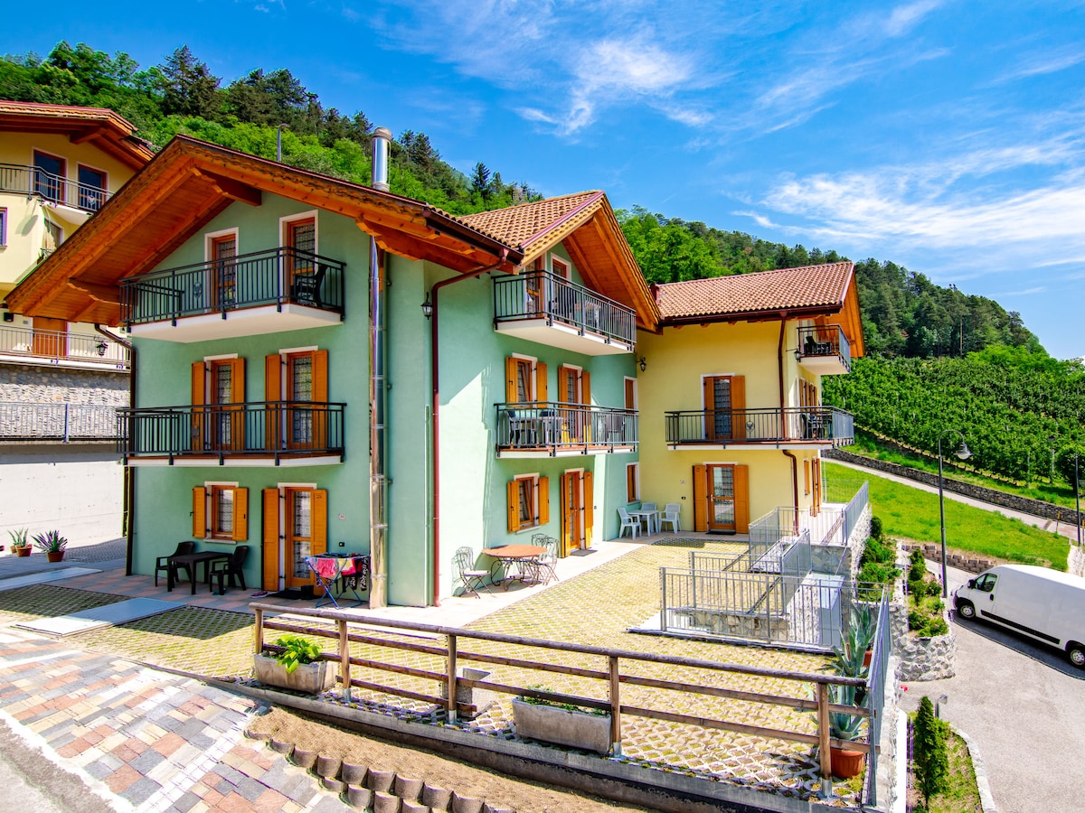 Hiša se nahaja na zelo mirni sanjski lokaciji v sadovnjakih doline Adige. Stanovanje se nahaja v 1. nadstropju, meri 120 kvadratnih metrov in lahko sprejme do 6 gostov. Bolzano je oddaljen 10, Merano 20, do smučišč ali pohodniških območij Dolomita pa je 40 min. Za vogalom so kolesarske poti in pohodi pred hišo. Gostje imajo na voljo 2 parkirni mesti na zaprtem dvorišču, vsako dodatno pa vam bomo zaračunali 10 EUR/dan
