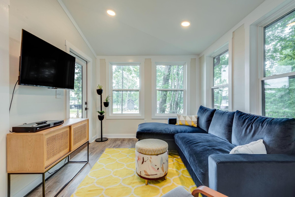 Ne glede na to, ali se želite sprostiti, se sprostiti na prostem ali uživati v živi glasbi v bližnjih jamah, je naš majhen dom, Ripple Reed Cove, popoln oddih. Počutite se, kot da se zbudite na drevesih z okni od tal do stropa. Smo eno redkih prenočišč v soseski z zasebnim pomolom – kot nalašč za uživanje v jutranji kavi ali uživanje v čudovitih sončnih zahodih. Naše mini-hiško je optimalen oddih s polno kuhinjo, ognjiščem, prostorno dnevno sobo in več zunanjimi bivalnimi prostori.
