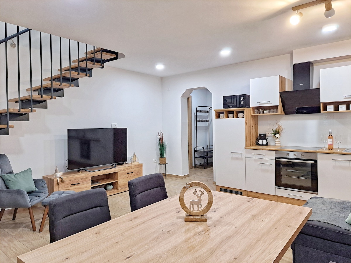 Apartment Gabrijel is situated at a peaceful location in an unspoilt nature, away from the city hustle and bustle. Here, you can enjoy the peace, quiet and fresh air. The Jezernica creek, which flows past the house, creates a pleasant babbling sound. The small kitchen is spacious enough for you to prepare homemade teas and proper Slovenian coffee. Making yourself one of these drinks, you can relax on a lovely terrace with a view of the neighbouring pasture where horses graze.