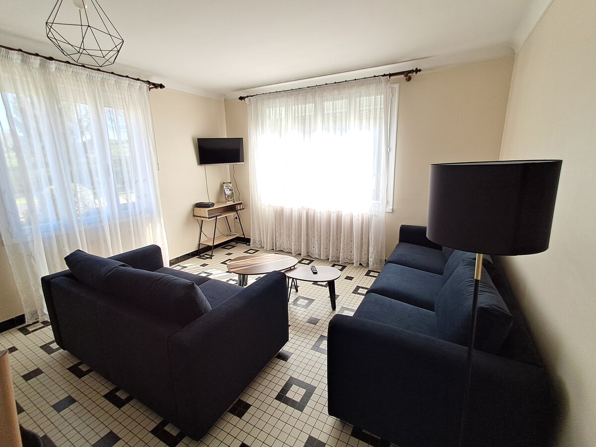 Ce logement paisible offre un séjour détente pour toute la famille. Cet appartement a un accès indépendant de la maison des propriétaires. Il possède un grand séjour équipé d'une TV et d'un canapé clic-clac servant de deuxième lit. Cuisine équipée ouverte sur le salon : plaque de cuisson, four, micro-ondes, frigo et congélateur, cafetière, grille-pain, bouilloire, vaisselle, torchons. SDB avec douche, lavabo et toilettes (serviettes, gants fournis). Chambre séparée avec placard (draps fournis)