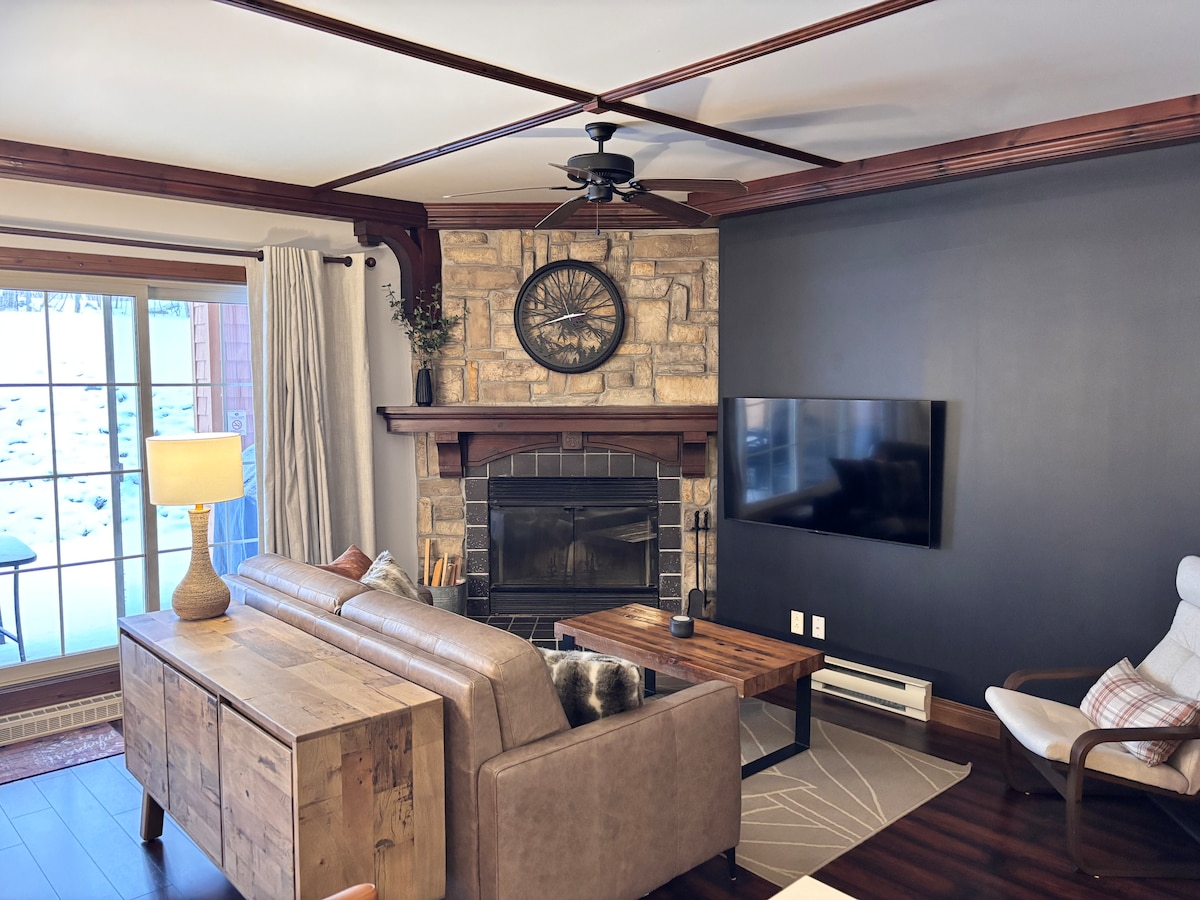 Superbe Condo " ski- in / ski- out " situé dans le secteur du Plateau à seulement 10 minutes de marche du village piétonnier! Vous apprécierez l’immense foyer de pierre, le bain à remous et la cuisine toute équipée. Idéal pour pour profiter du plein air et faire du télétravail. En effet, la table de cuisine s'agrandit et notre comptoir lunch a 2 bancs. Notre immense balcon couvert est muni d’un BBQ. En bas, on voit la patinoire (étang gelé) et la piscine (en été)! Parfait pour 2 ou 4 personnes!