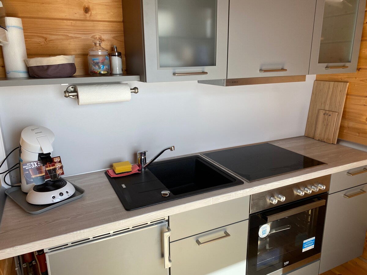 V mirnem skladišču najamemo udobno hiško na deželi. V Binzu na Rügenu na čudovitem Baltskem morju. Na jezeru Schmachter. Za 2 do 4 osebe. Večja spalnica z zakonsko posteljo in televizijo. Manjša ima raztegljiv kavč z zakonsko posteljo in TV. Velika kuhinja v ameriškem slogu - dnevna soba je popolnoma opremljena. Dnevni prostor je odprt in vabljiv za sprostitev ob kaminu. 5 min do plaže Po potrebi drugo parkirno mesto.