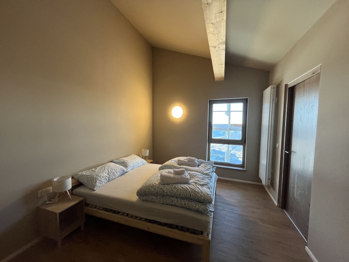 Soba je opremljena z garderobno omaro in lesenim predalnikom v dveh barvah. Soba je zasnovana tako, da je odprt prostor, svetel v stiku z naravo, prava zvezda vašega bivanja v gorah. Priporočljivo je, da davke pustite odprte ob zori s cvrkanjem ptic poleti in odrazom snega pozimi, začasnim in snežnim snegom, ki ga je treba preizkusiti.