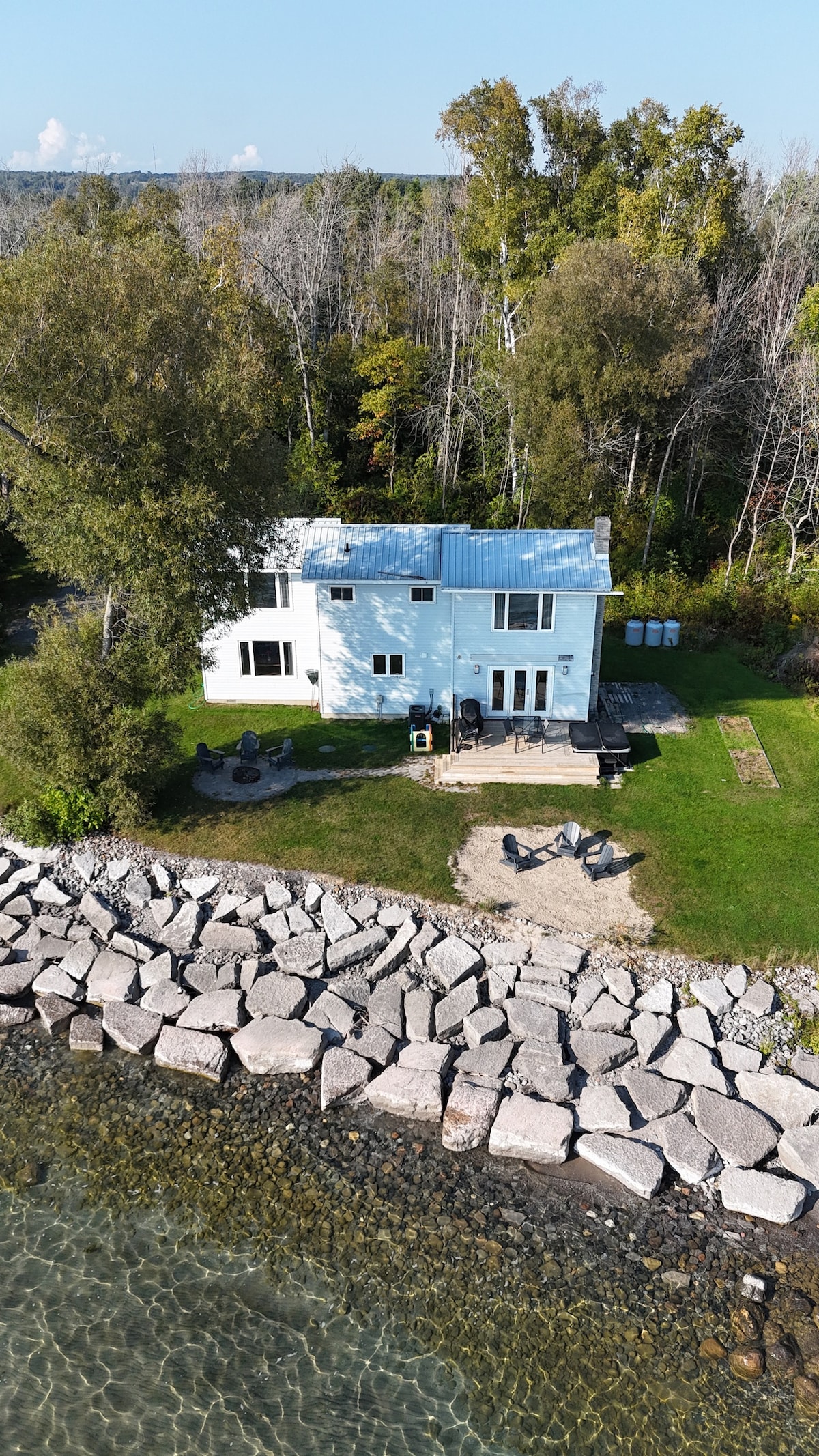 Pobegnite v to čudovito prenovljeno prenočišče ob jezeru s 52 metri zasebne obale v prelepem okrožju Prince Edward. Uživajte v naši novi savni s panoramskim razgledom, masažni kadi in zunanji prhi. Ta sproščujoč oddih se nahaja v zalivu Quinte, le 2 uri vzhodno od Toronta. 30 minut vožnje do Sandbanksa, 20 minut do Pictona/Wellingtona. V bližini številnih vinarij in pivovarn. Zaradi velikega dvorišča je to idealno prenočišče za skupine, pare in družine, ki iščejo razgled kot z razglednice in zasebno opremo za sproščanje. ST-2023-0002