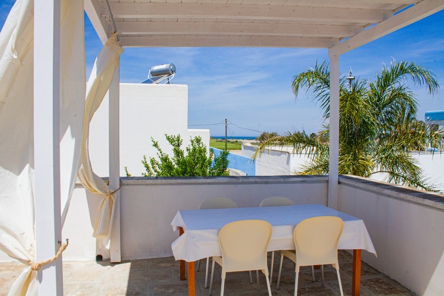 Stanovanje, obdano z zelenjem , z eno spalnico, dnevno sobo z opremljeno kuhinjsko nišo, kopalnico. Na zahtevo 1 ali 2 dodatni zunanji sobi s kopalnico.Zasebna terasa z mizo, žar. Skupni osvetljeni bazen 11 x 5 mt. Zasebno parkirišče Idealno za družine in skupine do 14 oseb. Hišni ljubljenčki so dobrodošli. Skupni prostori. Idealna lokacija za raziskovanje Lecceja in Salenta Super gostitelja Giuliana in Giuseppe vas bosta sprejela z nasmehom