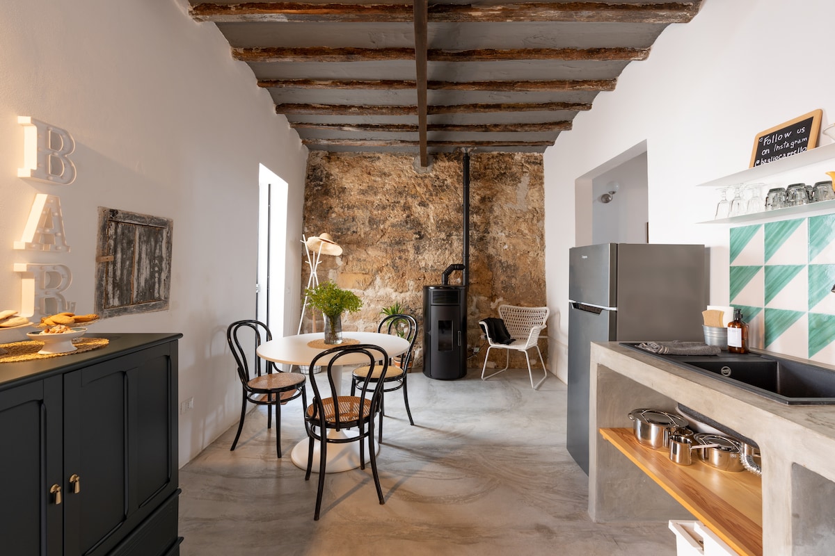 Anticamente la casa era il laboratorio di un fabbro con la sua piccola abitazione adiacente. Ristrutturata di recente in chiave contemporanea è diventata una residenza su due piani di circa 80 mq. Al piano terra si trova la zona living con il tavolo da pranzo, la cucina, i servizi ed una dispensa per i vini, raggiungibile da una scaletta in legno a gradini sfalsati. Una seconda scala in ferro nero, conduce al soppalco intermedio dove è organizzato lo studio. La balaustra diventa il piano di lavoro e si affaccia dalla doppia altezza. Al primo piano si trovano le due camere da letto con bagno interno. I pavimenti sono in cemento resinato e parte con mattonelle in pastina di cemento di recupero; il piano superiore è rifinito con parquet. Particolari gli arredi vintage, l'illuminazione degli ambienti e i quadri di arte contemporanea di un giovane artista-designer siciliano. La casa è dotata di climatizzazione invernale ed estiva, connessione wifi, Tv e lavastoviglie. A pochi chilometri c'è la spiaggia di Porto Palo (Bandiera Blu) con possibilità di gite in barca, voli con ultraleggeri e affitto bici. Nei dintorni, a meno di 25 minuti di auto, si può giocare a golf nello splendido Golf Verdura Resort. Sono facilmente raggiungibili i siti archeologici più importanti di Sicilia: Selinunte (15 minuti), Cave di Cusa (25 minuti), Segesta (45 minuti), Eraclea Minoa (40 minuti) e Agrigento e "Scala dei Turchi" (50 minuti) Da visitare: la città di Sciacca, Sambuca di Sicilia (Borgo più bello d'Italia 2016), il Parco Letterario di Tomasi di Lampedusa a Santa Margherita (15 minuti), il “cretto di Burri" a Gibellina (30 minuti), lo Stagnone di Marsala (Mothia), le Saline e la città di Trapani, Erice (tutti a circa 60 minuti di auto) La città è ben collegata con gli aereoporti Falcone Borsellino di Palermo e Trapani Birgi entrambi raggiungibili in un'ora di auto.