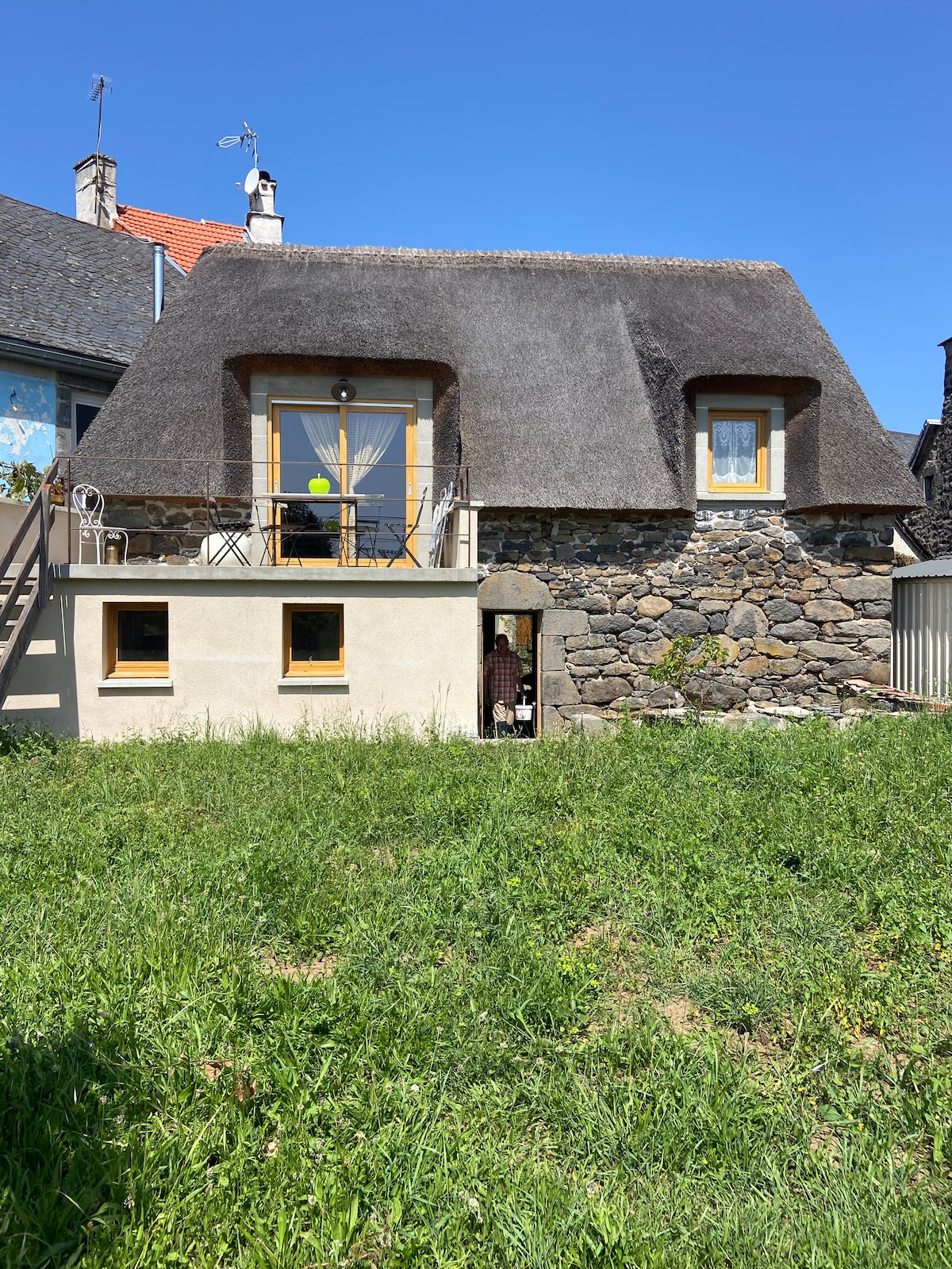 Na podeželju, 4 kilometre od Condata in meji na najin dom, je naša kmečka hiša Cantal, znana kot longère. Debele kamnite stene, leseni tramovi, velika dnevna soba s tradicionalnim kaminom in gorilnikom za hlode, internetna televizija, dve spalnici, kopalnica in opremljena kuhinja. Uživajte v sedenju ob bučnem ognju pozimi ali v senci stare lipe s kozarcem vina in uživajte v spektakularnih razgledih poleti. Ne glede na letni čas boste uživali v udobju in šarmu Longèra.
