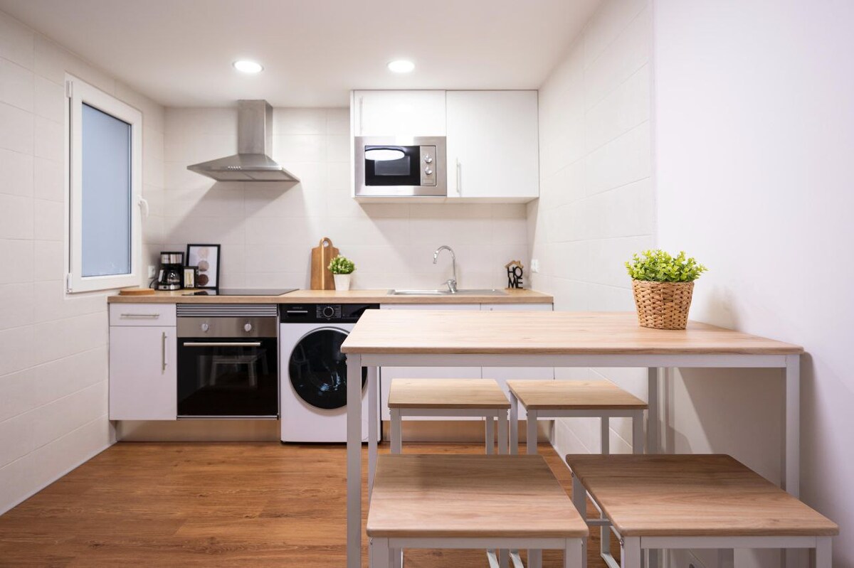 Nuestros estudios con cama de matrimonio, miden 22 m2 aprox y tienen vistas al patio interior o a la ciudad. La zona de cocina cuenta con cafetera, tostadora, microondas con Grill, frigorífico o nevera, vitrocerámica y menaje básico. El baño tiene ducha y secador de pelo. Completan sus instalaciones TV con pantalla plana, wifi gratuito, cama de 150 x 200 cm. Sus diferentes tipos de decoración (funcional, mediterránea o sofisticada) crean en las estancias un estilo moderno y acogedor.