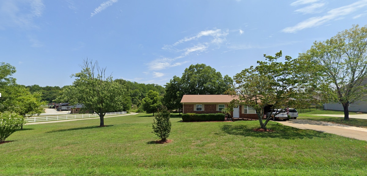 This cozy countryside retreat offers a spacious kitchen and living area where you can unwind, cook your favorite meals, and enjoy Roku TV in comfort. Bring your furry friends along—our pet-friendly space gives them plenty of room to roam both inside and out. High-speed internet/dedicated workspace make it perfect for working remotely. Relax on the back porch overlooking apple trees & nearby horses. 10 minutes from regional airport. 25 minutes from Charlotte and 10 minutes from dining & grocery.